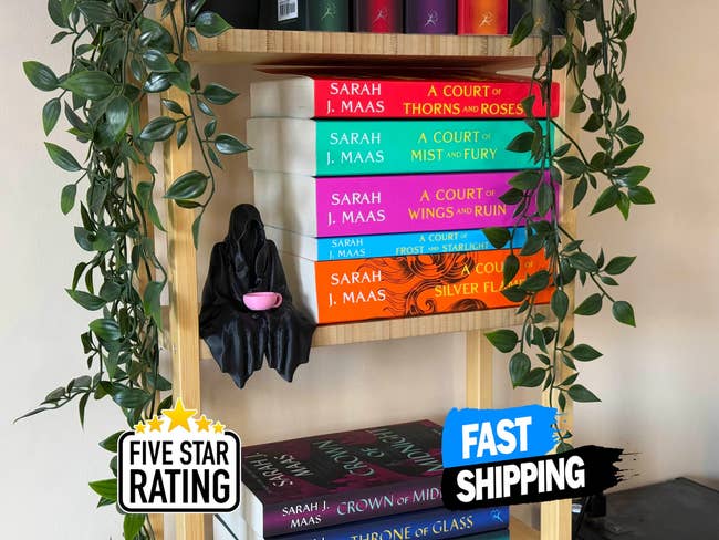 Promising review: "Ordered the regular size Suriel for my bookshelf, and I can't stop staring at it as it sits perfectly on top of my books. <3 I'm obsessed and can't wait to order more bookshelf decor." —Aimee