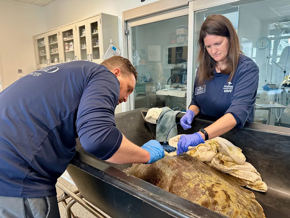 JUNO BEACH, Fla. (AP) — The veterinary staff at a Florida sea turtle hospital is getting help from space to monitor the animals they have rehabilitated. They're particularly interested in amputees. Using satellite tracking devices in a collaboration between the Loggerhead Marinelife Center and the Smithsonian Conservation Biology Institute, scientists are learning how well sea turtles can survive in the wild after losing a limb. Amelie, a Kemp's ridley sea turtle who lost her right forelimb to a predator — most likely a shark, the center said — was taken to the beach on Wednesday for her highly anticipated release. The turtle paused for about 30 seconds, then slowly made her way into the Atlantic Ocean as onlookers cheered. Amelie had been rescued and brought to the center by the Inwater Research Group in Port St. Lucie, Florida, seven weeks earlier after a traumatic amputation. She underwent surgery to clean and close the wound, and was treated for pneumonia while in a tank at the center. When veterinarians deemed her healthy enough to return to the sea, they glued a tracking device to her shell. An ultrasound confirmed that Amelie is developing eggs, giving researchers another reason to track her movements. Kemp's ridley turtles, the rarest of sea turtle species, are more typically found on Florida's Gulf Coast, so treating Amelie was especially significant, said Andy Dehart, the center's president and CEO. Amelie is actually the fourth amputee sea turtle being tracked by the enter, Loggerhead research director Sarah Hirsch said. They include a three-limbed turtle named Pyari who has traveled nearly 700 miles since her release in January, her tracker shows. “We do know that they can be successful in the wild because we have seen them on our nesting beaches, but we really want to understand their dive behaviors, how they’re migrating once they’re back in the wild," Hirsch said. The satellite tags have a saltwater switch that detects when the turtle comes up to the surface to breathe, triggering the transmission of data to the satellites. Their location appears online after a 24-hour delay. To view Amelie and other turtles tracked for various research projects, visit the Loggerhead website. “They’ve been through a lot," Hirsch said. "They’ve gotten a lot of medical care here, and to see them be able to go back out and contribute to the population is really rewarding.” To view Amelie and other turtles tracked for various research projects, visit the Loggerhead website. — Frisaro reported from Fort Lauderdale, Florida.
