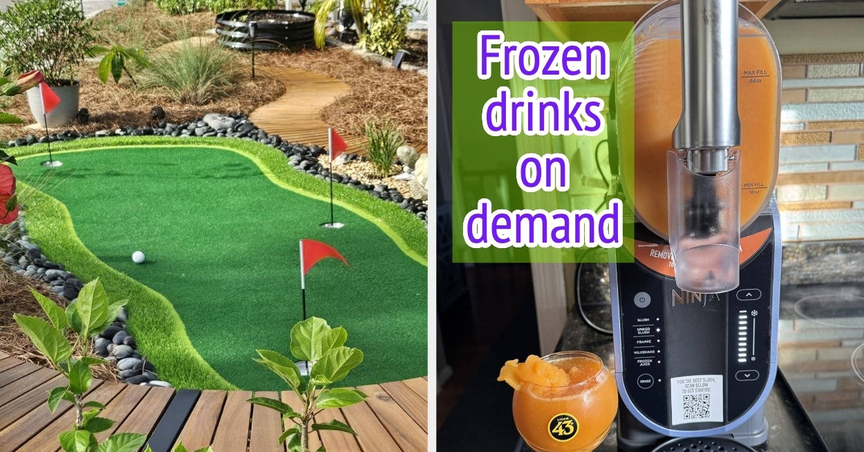 Promising review: "I'm not a golfer, but I like to putt. When I ordered it, I didn't think this not-so-little course would be so nice. It's well-made, unrolled flat with no wrinkles, and functions as anticipated. It can be set up to be challenging or easy. We have it incorporated into our landscaping in full Florida sun and weather (rain), and it's holding up very well (no fading yet and drains well). It's durable as our cat likes to use it to sharpen his claws." —Scott and Lisa