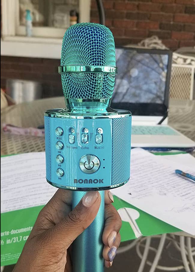 Promising review: "You don't understand — TikTok made me obsess over this microphone. As a 30+ year-old woman, I resisted purchasing it. I finally broke down and bought it because it was haunting me in my sleep. I'm so glad I did. When I am in a bad mood, I start karaoke in my house and am instantly better. It has 'ruined' my teenage son's life because my performances can be heard through his Xbox microphone. This is a must-have product." —Zane A. Undercoffer
