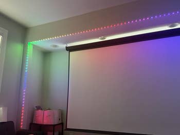 Promising review: "Great lights. Bought for my teenager's room, and they are easy to use, add a fun touch, and fit great. Color is bright and beautiful. You can adjust from your phone and change the color/theme daily. Hooks up to what music you are playing to add a fun spark to your room. Highly recommend. Easy to install, connect, and use! Easy to connect, sticks well, and functions great!" —Careichwein