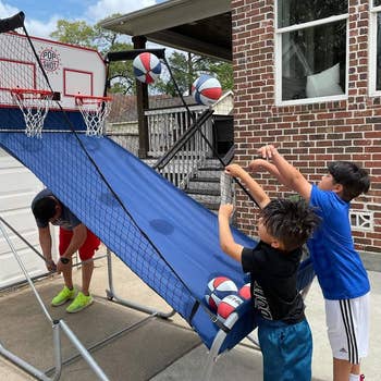 Promising review: "Holy moly — I’m not sure who uses this more, our 7-year-old or us parents trying to have a showdown. The kids absolutely love it, but so do we. It’s turned into a go-to for family competitions and friendly trash talk. There are 10 different game options, which is awesome because it works for everything from single-player practice to full-on family tournaments. It keeps our 7-year-old entertained, burns energy, and actually brings everyone together. We did go ahead and purchase more balls separately. It comes with four, but we bought three extra. Such a fun addition to our home and totally worth it!" —Kelly W