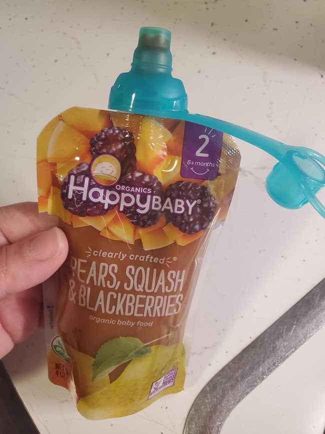 Promising review: "My now 2-year-old has never, ever eaten more than a few sips out of these pouches, of any kind. I got this spill-proof lid to put on it... she's on her second one in a matter of minutes. I think the problem was she didn't like getting messy or having me constantly pull it away. This gave her so much more control, and it prevents them from being squeezed all over. Wish I discovered it a year and a half ago!" —Amazonian