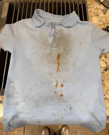 Promising review: "My 1-year-old has taco meat stains ALL over the sleeves of his shirt. The stains were 2–3 days old, too. I sprayed the shirt, let it sit for about 15 minutes, and then washed the shirt with regular laundry soap. Almost every bit of the stains came out. Definitely buying bulk in this product!" —Sloan Avery
