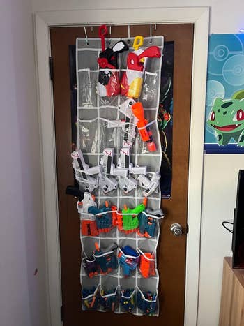 Promising review: "I bought one for my child's door to keep little shoes, diapers, wipes, medicines, cloths, etc. in...then bought another one for my other child to keep more shoes, necklaces, little toys, cassette tapes, etc. This is a perfect way to keep things up and out of the way! And it works great for diapers and little shoes!!! The pockets are not large enough to hold some pairs of my preschooler's tennis shoes. They are one shoe per pocket. But otherwise, they are quite big. About five size-4 diapers fit per pocket to give you some idea. :)" —T L