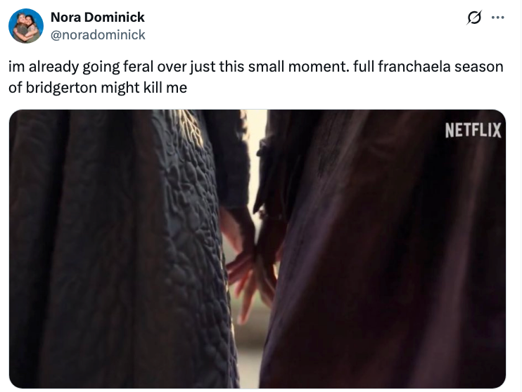 This week in TV and movie news, the "Love Story" season finale aired, Francesca is officially leading "Bridgerton" Season 5, and much more! As a Senior Talent Booker and Producer at BuzzFeed, you can typically catch me flailing about the buzziest TV shows and movies. Streaming on HBO Max; new episodes every Sunday Starring Jason Bateman, David Harbour, and Linda Cardellini, DTF St. Louis is a new HBO limited series that follows a group of adults who are going through something many people experience: a midlife crisis. But when three of them fall into a love triangle, things get even more complicated. Especially when one of them ends up dead. DTF St. Louis probably had one of my favorite first episodes of the year, that immediately hooked me. And from there, the show has continued to be a must-watch for me week after week. The show does a great job of blending hilarious comedy with really dark drama, basically the definition of a dark comedy series. While Bateman and Harbour are great in this, it’s Cardellini who steals the show. So much so, I think she’s a frontrunner for an Emmy nomination in the limited series category alongside Sarah Pidgeon (more on her next!). HBO always makes amazing limited series, and this one is no exception. The final episode of Love Story is now streaming, so it feels only right to once again highlight this show. If you’re someone that prefers a binge-watch over waiting weekly for episodes, then now is your time to catch up on a show that has mesmerized everyone. Created by Connor Hines (and executive produced by Ryan Murphy), Love Story follows the whirlwind romance and marriage of John F. Kennedy Jr. (Paul Anthony Kelly) and Carolyn Bessette (Sarah Pidgeon), who were one of the most high-profile celebrity couples of the late ‘90s. Over the course of nine episodes, the series charts JFK Jr. and Carolyn’s meeting and their early days, but also how much changed after their wedding, namely the press and paparazzi's critical obsession with Carolyn. As the season has gone on, Pidgeon has proven time and time again why she’s one of the best up-and-coming actors right now. She’s a scene stealer. As Carolyn’s life deteriorates, Pidgeon has been able to handle it with so much nuance, leading into the tear-jerker of a season finale. Her transformation on screen has been incredible, and I cannot wait for her to be praised come awards season. If you finish the show and want to learn more about JFK Jr. and Carolyn, I recommend reading Once Upon a Time: The Captivating Life of Carolyn Bessette-Kennedy. Directed by Meredith Alloway and written by Alloway and Lily Houghton, Forbidden Fruits follows Apple (Lili Reinhart), who secretly runs a witchy femme cult in the basement of the mall store where she works after hours. She's joined by her fellow "fruits" Cherry (Victoria Pedretti) and Fig (Alexandra Shipp). However, when new hire Pumpkin (Lola Tung) challenges their performative sisterhood, the women are forced to face their own secrets and poisons or succumb to, well, a bloody fate. What can I say? I am a simple girl. I get a comedic horror movie with a bunch of female actors I adore? How can I not love it?! Led by a tremendous performance from Reinhart, I have no doubt this movie will become a cult favorite, similar to Jennifer’s Body. What this movie does best is how it can go from a cute friendship flick to full-on horror in a matter of seconds, and it’s thanks to a masterful first feature film directing job by Alloway, who leans on her all-star cast to make this movie really work on all levels. These are some of my favorite things from my FYP, feed, and more: Also, have a question for me? Send it to me now at screentime@buzzfeed.com, at this Google form, or let me know in the comments below. There are so many TV episodes that have made me audibly weep over the years, but out of everything, there are two very clear instances where I’ve only watched the episode once and NEVER rewatched it again. First is “Flight” from Season 8 of Grey’s Anatomy, aka the plane crash. I watched that season finale live in 2012 when it first aired, and I wept so hard over (spoiler alert) Lexie Grey’s (Chyler Leigh) death. Lexie and Mark (Eric Dane) remain my all-time favorite Grey’s Anatomy couple, and this finale was a rough one. My friends and I literally wore black to school the next day after this episode. And now, 14 years later, I’ve still never rewatched it. The second TV episode that was so heartbreaking that I’ve never rewatched it is “The Day Will Come When You Won’t Be” from Season 7 of The Walking Dead. I think all you need to know here is I consider Glenn Rhee (Steven Yeun) one of my top three TV characters of all time. So, let’s just say this one hurt me deep in my soul. My college roommates can attest, I cried so hard in our apartment that my face was red, and I didn’t talk for, like, five hours afterwards. I sat in stunned silence as (spoiler alert) his head was bashed in by Negan (Jeffrey Dean Morgan). I knew it was coming because of the comics, BUT STILL. Have a question for me, or want to tell me what you’re watching right now, or have a suggestion of what I should watch next? Send it to me now at screentime@buzzfeed.com, in this Google form, or in the comments below!