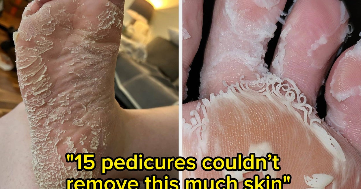Promising review: "My feet used to be horribly dry, itchy, and cracked with thick calluses. I started using Baby Foot every couple of months a year ago, and my feet are now soft and smooth. Make sure to soak your feet before using and then again at least once a few days later. I leave the booties on for longer than the instructions, usually around two hours. It doesn’t burn or irritate my skin. A few days later, the top layer of skin starts peeling all over. It’s REALLY gross-looking, so make sure you don’t need to show your feet for about two weeks! The results are amazing, so it’s totally worth it! Calluses improve dramatically with one treatment but bad calluses may need a couple of treatments to go away. Make sure to wait at least two weeks before using again. I’ve recommended to all my friends and family. Seems to work for all skin types." —Mostly Maven