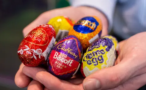 Creme eggs have been delighting - or not, depending on your palate - British tastebuds for more than 50 years. "I scran them up so fast," says Ethan in Manchester, who is on his way to a gym session. The 23-year-old, an Easter treat enthusiast, has tried Cadbury's other creme egg varieties - including a new Biscoff-filled one released this year. "I'm not a fan," Ethan says with a grimace. "It's too gritty, that texture ain't for me." You might have seen the caramelised biscuit Biscoff creme egg sitting alongside others in your local supermarket recently - a white chocolate version, Terry's chocolate orange, Lindt, Reese's peanut butter and more. The humble filled egg is just one of many Easter staples on the shelves that seem to be branching out into all sorts of flavours. But do shoppers really want to buy these creative versions of Easter classics or is a back-to-basics approach the way forward, particularly when the cost of living is rising? These items are available across all big supermarkets. BBC News visited three major ones this week to see what people thought - and views were torn. The ancient origins of hot cross buns have long been disputed by historians. And when it comes to new flavours, it turns out these currant-filled spiced buns - traditionally eaten on Good Friday - can be just as divisive today. At M&S varieties now include red velvet, lemon curd, tiramisu, caramel fudge, chocolate, cheese and apple incarnations. At Sainsbury's the range is similarly extensive with orange marmalade, salted caramel, carrot, cherry, rhubarb, ginger and cinnamon. Standing outside a supermarket Ethan tells us he's heard very good reviews of lemon curd hot cross buns. "I'd be up for trying all of them," he adds, looking disappointed we haven't brought samples. But around the corner, we meet Jann, who disagrees. "I'm not into all that," the 80-year-old, who lives near Oldham, says. "Just give me a hot cross bun, plenty of fruit… toasted and buttered. "It's got to be buttery." Another Easter treat, mini eggs, have also been expanding into different flavours in recent years. In 2024 Cadbury's released orange mini eggs, rivalling Terry's chocolate orange versions which first appeared in 2020, joining other milk and white chocolate varieties. And it's a similar story in the world of big Easter eggs. Visiting a supermarket in Manchester city centre, we see two kinds of "layered" easter eggs - one made of chocolate and a caramelised biscuit spread, the other with caramel but no biscuit. A "chocolate doughnut Easter egg" triggers curiosity - a shell blended with shortbread and fudge pieces, topped with sprinkles. Down the road we meet 78-year-old John, who tells us he's very open to trying new foods, but still has an allegiance with many of the classics. "You're kind of torn between holding on to the original and trying the new," John says. "But I quite like the hot cross bun with a bit of apple." His favourite treat, however, is the Simnel cake, a traditional fruitcake typically made with a layer of either marzipan or almond paste and associated with Lent. "You don't find it very much [now]," John laments. " It's a wonderful thing, very special for Easter." It's easy to see why more inventive Easter creations keep appearing on our shelves - people like to buy them. Research group Mintel says 75% of the 2,000 people it surveyed in December had bought food or drink for Easter in the last year, with chocolate the most popular purchase (48%) followed by cakes, sweet bakes or desserts (23%). More broadly, the agency also has research from October 2025 suggesting seven in 10 people generally enjoy food and drink that provides new experiences such as new flavours. But rising global cocoa prices mean chocolate is now 15% more expensive than it was a year ago - and Easter 2026 comes at a time when many household incomes in the UK are squeezed. While chocolate companies have been heavily criticised for shrinkflation in recent years, Cadbury archivist Sarah Foden insists creme eggs are "exactly the same size" as they were in 1971 - and showed us the moulds used in the company's Birmingham factory that year. Cadbury estimates the Easter chocolate market in the UK is worth around £700m. Its vice president of marketing Dave Clements says Biscoff-filled creme eggs are "doing incredibly well" - which the company believes is down to shoppers having "new desires about textures, tastes, flavours and bringing something a little bit different to more traditional eggs". The company is not alone in its confidence about the appeal of more creative Easter treats. Bakery Lottie Shaw's, which has been making treats in Yorkshire since 1912, says sales of its "hot cross tarts", which combine spiced fruits with treacle in a shortcrust pastry paste, have surged by 800% since launching last year. Neil Rocklif, who is in charge of innovation at Finsbury Food Group which bakes about 100 million hot cross buns a year for several major supermarkets, says experimentation with varieties began in the early 2010s, but exploded a few years ago following lockdown. Cakes and desserts are a big inspiration for his team, and they're proud of a new hot cross bun inspired by carrot cake. "We used roasted carrot shreds in that one [with] pockets of white chocolate in the bun to replicate the frosting that you'd normally get on your carrot cake," he explains. "And then to give it some crunch, we used pumpkin seeds in there as well." Of the millions of hot cross buns the company makes every year, two thirds are fruit-based. When it comes to new flavours, "it's your imagination, that's the only limitation", Neil says. "I've eaten all of the different flavours at this point," he adds with a grin. "All in the name of research, of course." Outside another Manchester supermarket we meet Alina, 24, who says the rising cost of chocolate means she is buying less than she used to - and is now baking more at home instead. "I work in retail," Aline tells