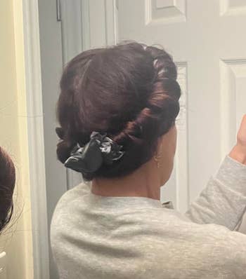 Promising review: "I love this bun. It is so versatile to me depending on how you pin it. You can definitely get a lot of different looks out of it. It's so easy to install, it saves me time getting ready and it's comfortable to wear all day. The color match looks great with my chestnut brown zooey bangs (I'm wearing Sammy in mixed brown). I love that my hair can look this great without any heat damage to my natural hair." —Alisa B.