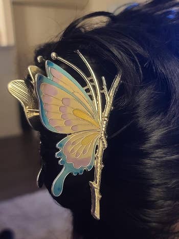 Promising review: "These hair clips are really good quality. My hair is a couple of inches past my clavicle, about 4 inches past, and medium thickness. The clip holds it very securely. I think these clips could hold thin or thick hair. Thank you for a fabulous product." —Debra DeMattei