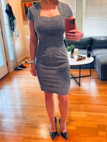 We hope you love our recommendations! While every product is independently chosen by our editors, BuzzFeed and our publishing partners may collect a share of sales or other compensation from the links on this page. You can read more about how our affiliate partnerships work in our Editorial Standards & Ethics Guide. The weather is getting warmer and you're getting more inspired to dress cute at the office. If you’re currently staring at your closet feeling like you have absolutely nothing to wear for that 9-to-5, I've got you! These spring-friendly office outfit ideas involve comfortable dress pants, chic blazers, and stretchy pencil skirts — pieces that'll help you feel put-together without the morning wardrobe meltdown. Whether you need a breathable knit set or supportive block heels, these picks are ready for your next big meeting. Unless otherwise specified, all sizes in this post are listed in women’s. Promising review: "I always get compliments on this color! It’s the perfect basic top for an office setting. Not sheer and just not enough stretch." —Matthew B. Get it from Amazon for $19.99 (available in sizes XS–3XL and 28 colors). Promising review: "These are my new workhorse pants for office wear. Nothing fancy, but they're comfortable, they fit well, they're priced right." —Amazon Customer Get it from Amazon for $32.99+ (available in sizes 16–24, short lengths, and six colors). Promising review: "Super soft and well made. I get compliments every time I wear this shirt! I have rather large breasts, and it fits really well over top of them. Just an FYI for all of my big-busted girlies out there. I hang dry, so it keeps its shape very well after each use. The material is a little thick, so perfect for a cold office setting." —Shelia R. Get it from Amazon for $16.99+ (available in sizes S–XXL and 15 colors). Promising review: "These truly are one of my favorite things to wear to work every day, and I have one of every color. (I think I'm missing like three or four colors, but they are amazing!) The durability is great; they wash up fabulously. Great for the value. Truly a must-have!" —Christy Hawkins Get it from Amazon for $58.99+ (available in sizes XS–XXL, XL Plus–5XL Plus, and 26 colors). Promising review: "Buy the dress!!! If you work in a professional environment or just want to dress up, this dress is for you. It has a slight stretch, unlike other tweed styles, so it will hug all your curves. I got so many compliments on it. It’s very comfortable and very stylish." —Jake/Shelby Arians Get it from Amazon for $39.99+ (available in sizes S–XXL and 19 colors/styles). Promising review: "I cannot rave enough about these pants! They are so versatile, the quality is top-notch, amazing comfort, they launder so well, and run true to size. I have multiple pairs and wear them to work in an office. I will definitely be purchasing more. This brand has a large color selection to choose from. I cannot recommend these pants enough!" —Tennessee Shopper Get it from Amazon for $36.99+ (available in sizes XXS–3XL and 19 colors). Promising review: "Elevates every work outfit! These are the cutest belts! I get the most wear out of the black, and it makes every pair of trousers look super chic and professional. The adjustable back is good for pants with different waists and is super comfy even after a big lunch! Also, I get compliments all the time, and some people even think it's designer, haha." —Amy S Get them from Amazon for $13.97+ (available in two sizes, various colors, and packs of two). Promising review: "Love this dress. Bought it to wear to work and thought it would be great for the holidays with some tights and heels." —Lauren J. Get it from Meshki for $155 (available in sizes XXS–3XL and three colors). Promising review: "I have this top in the beige and the olive green color, and I love it! I’ve worn it to job interviews, work functions, church, and so many other things. I love it! Super versatile and well made!" —Rebecca Hendrix Get it from Amazon for $27.99+ (available in sizes XS–XL and 12 colors). I recently rented this dress from Nuuly and am strongly considering buying it in a color I really love. It's wonderfully stretchy and comfortable. I went with my true size, though I could've sized down since the material offers decent stretch. (I have a small chest, so YMMV.) Ultimately, I think I prefer having that extra bit of movement and freedom, but if you really want the dress to cinch your waist, then you could opt for a size down. IMO, this dress is great for the office — it's a thicker material that is pretty wrinkle-resistant, so it doesn't look like a crinkled-up napkin when I stand up after a few hours typing away at my desk. It's also totally something I'd wear outside of the office casually with sneakers or for a dressier occasion with sandals or heels, so yes, it's expensive, but you can really get your money's worth. Get it from Anthropologie for $198 (available in sizes XXS–XL standard, XXS–XL petite, and 1X–3X plus). There's also a super-cute mini dress version! Promising review: "What can I say? The title said it's all. I absolutely love this skirt. I love the fabric; it's breathable, it's comfortable, and it looks amazing on me. It hugs without being too tight. Sometimes, skirts like this can be a little stiff up in the waist area, causing them to be so uncomfortable, but not this skirt. The fabric moves with you, making it so much more comfortable. And if you work in an office, and you have to wear suits and skirts all day long, that's a great find. Would love to order this in cream/beige." —Tara Get it from Amazon for $19.99 (available in sizes XS–5X and 31 colors). Promising review: "I love this. I bought it for a conference, so it works perfectly. Paired with a knee-length skirt, it gives sort of 1950s vibes. Also, IF YOU HAVE BROAD SHOULDERS, this fits fine, no pulling or puckering in weird spots." —Cari G