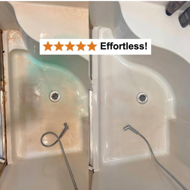 Promising review: "I saw this product on TikTok and decided to try it out for myself. The name doesn’t lie — spray it on, shut the bathroom door, and in a few hours, the shower is 100 times cleaner. Usually I’ll let it sit overnight, and by morning, the visible grime on the shower is gone, including soap scum. I’ll usually let the shower water rinse the residue out, and then will take a bucket just to get everything off the shower walls. It is a bit slick if you try to get in the shower without rinsing the residue, but otherwise it’s a worthy cleaning staple in my house." —Tara D.