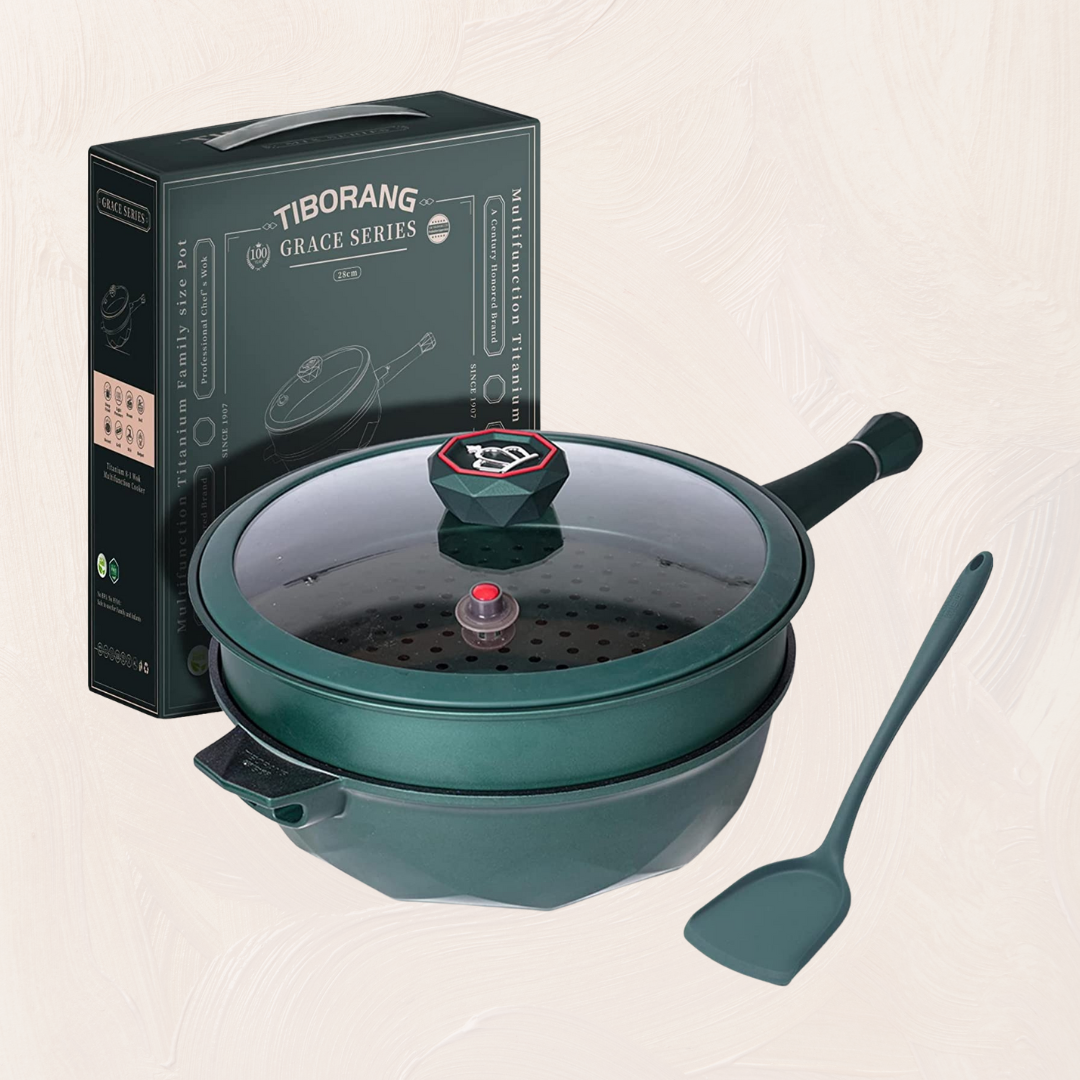 This versatile pan comes in multiple colors, including green, pink, black, navy blue and purple. You can steam, stew, boil, fry and more without having to buy a bunch of different bulky pans. It's non-stick and the handle is has a built-in heat detector and is detachable so you can save space while storing it.