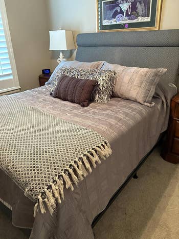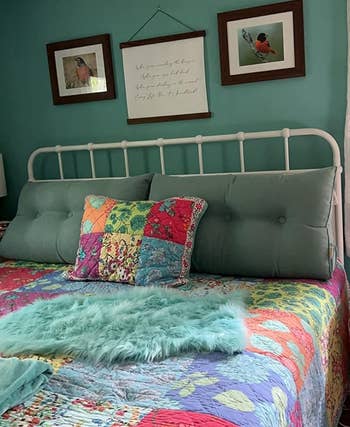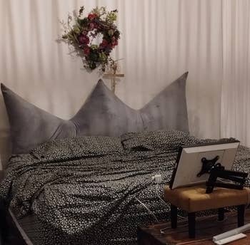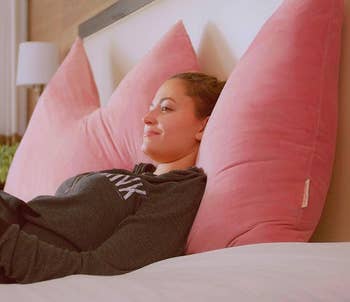 We hope you love our recommendations! While every product is independently chosen by our editors, BuzzFeed and our publishing partners may collect a share of sales or other compensation from the links on this page. You can read more about how our affiliate partnerships work in our Editorial Standards & Ethics Guide. If your headboard (or lack thereof) is causing your strained neck to talk smack about you to your pained back, you need a headboard pillow. Promising review: "Love the color, softness and how thick the pillow is. It fits perfectly in our travel trailer queen bed and on the jack knife couch to watch TV. It was the perfect buy! It even has a removable and washable cover!!" —Amazon Customer Get it from Amazon for $79.98+ (available in five sizes and 14 colors). Promising review: "I absolutely love this Headboard Pillow. I like sitting up and relaxing. I don't like having to hit my head on the wooden headboard and constantly repositioning pillows. This fixes all my problems. To be honest. It's a cozy pillow as well. 5 Stars for this." —Reader Get it from Amazon for $62.99+ (available in four sizes and six colors). Promising review: "I never knew that headboard rests such as these were a thing!!! They fit well and certainly make the lean-back against the headboard so much more comfortable!!! So soft, so smooth, so perfectly fitted to my headboard! They feel absolutely heavenly!!!" —Gypsy Gaeda Get it from Amazon for $47.99 (available in ivory and grey). Promising review: "Just look at how cool this is. And it really is so comfortable to lay your neck in the neck spot. Headboard size and strong, not under-stuffed, but still soft to rest my head on or sit up." —sandy Get it from Amazon for $69.98+ (available in three sizes and five colors). BorysCa is a Ukrainian design brand that was started by a husband-and-wife duo. They specialize in unique and cozy home decor. Get it from BorysCa on Etsy for $75.60+ (originally $84; available in 12 sizes and lots of colors). Promising review: "Bought this for my guest room because I bought a metal platform bed, and pillows would slide back against the wall. My sister said it was perfect. So it’s a 5-star day." —Phyllis Get it from Amazon for $96.95+ (available in three colors). Laura Park Designs is a woman-owned, family-run small business creating unique and colorful textiles that'll help transform your home. Get it from Laura Park Designs for $179 (available in 13 styles). Get it from Amazon for $49.99+ (available in two sizes). Promising reviews: "I just underwent a major surgery, and I have a lot of pain in my stomach and my back, so getting up from my deep-set bed was painful and difficult. I struggled to get comfortable, trying to adjust the pillows to support me just right. When I tell you this product is a LIFE-SAVER. Worth every penny. I can finally get in and out of bed with ease. And when I'm in bed, I'm finally comfortable. The adjustable neck pillow is perfect to center the pillow right under your neck. Absolutely incredible." —Skylar Evgi "I originally bought this wedge pillow for spinal support — you know, the adult way of saying 'my back hurts when I breathe.' But little did I know, this orthopedic masterpiece would soon become the unsung hero of our bedroom Olympics. First night using it, my husband looked at me like I was the newest model in a Tesla showroom. Next thing I know, I’m folded like a lawn chair on the Fourth of July. And guess what? ZERO back pain. Ten out of ten. Would get folded again. So, if you want improved posture AND the ability to try positions that previously required a personal injury attorney — get the wedge. Your chiropractor might be disappointed, but your marriage won’t be." —Doug Schramm Get it from Amazon for $37.98+ (available in three sizes and 11 colors). Promising review: "I had spinal surgery and am not able to lie flat on my back. If a recliner is not available, then this works best so I can sleep. It helps to take the pressure off my spine." —Sunshine P Get it from Amazon for $29.99+ (available in six colors). My Little Space is a woman-owned small Etsy shop making cute and unique goods for kids and their rooms. Promising review: "It's so lovely. Soft and plush but firm enough to hold its own. Absolutely love this piece!" —Alaina Get it from My Little Space on Etsy for $52.09+ (available in six sizes). Get it from Pottery Barn Teen for $149 (available in pink and blue). Promising reviews: "Love this thing! Hate when my pillows fall in the crack between mattress and headboard. This solves it!" —Maya Lynne "I've had trouble with my pillows always slipping down between my bed and the wall. Not anymore. This is a great product to have. I don't have a backboard, but it really doesn't matter as it stays firmly in place." —Jeff Brown Jr. Get it from Amazon for $22.99+ (available in sizes Twin–California King) Promising review: "Gorgeous headboard! Easy to put together and looks just like the photos, so happy!" —Karl LaishaLeatherStudio is a small business specializing in custom leather upholstery, cushions, and outdoor decor. Promising review: "Excellent headboard cushions. Custom to exactly what I needed. Very happy with purchase. Quickly made and shipped." —Brooke Get it from LaishaLeatherStudio on Etsy for $93.55+ (originally $187.11+; available in four sizes). BlueBrushGifts is a small business based in Poland that makes gift and decor items. Promising review: "Absolutely stunning! We’ve had our pillow for our 180cm wide bed for about 2 months now, and it’s the best thing we've ever bought. We love reading in bed and watching films, and it has just transformed the comfort of our bed for us. Quality and colour are gorgeous! Would 100% buy again! And reallyyyyy worth the price." —Marlene Get it from BlueBrushGifts on Etsy for $333.16+ (originally $416.44+; available in 16 sizes and a variety of colors). Promising review: "Perfect as an alternate headboar