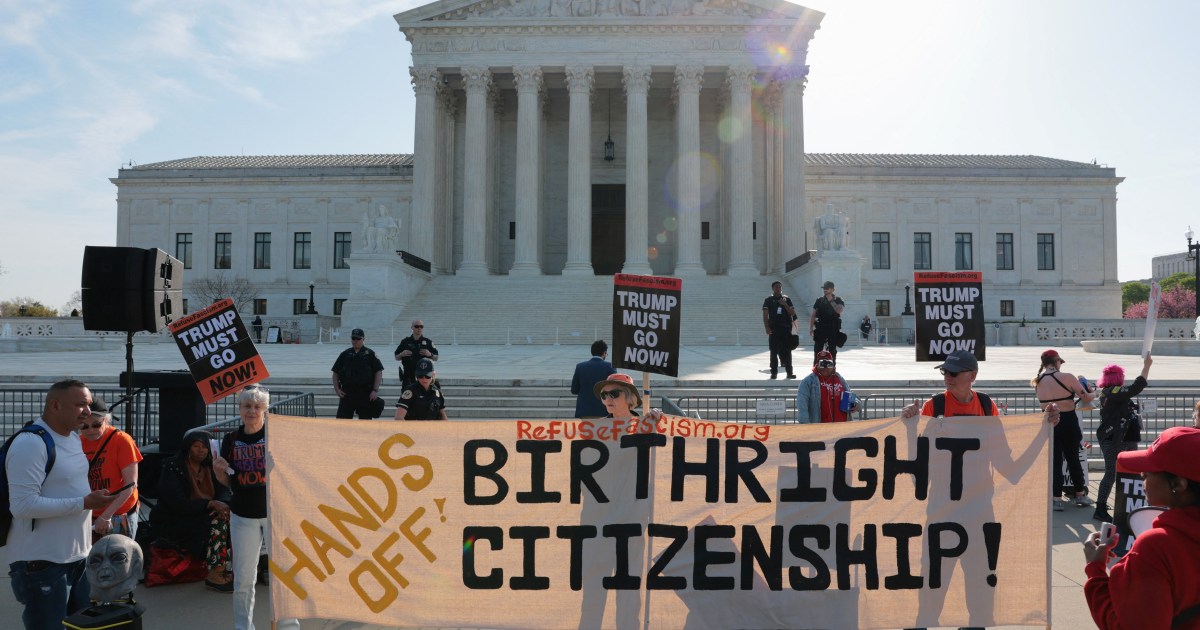 Hundreds of protesters, many associated with civil rights and immigration advocacy groups, gathered in front of the country’s top court during the proceedings, in which challenging lawyers argued that the Trump administration’s plan, laid out in an executive order signed on January 20, 2025, ran counter to the US Constitution and subsequent federal law.