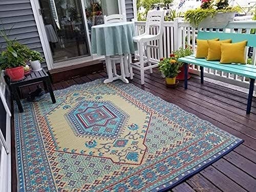 Promising review: "Love this rug. These were recommended by a friend for use on my outdoor patio. They are terrific. So easy to clean and no matter what the weather brings, they always look fantastic. And they make my outdoors look like a living room. Great, inexpensive way to spruce up a backyard." —Miami