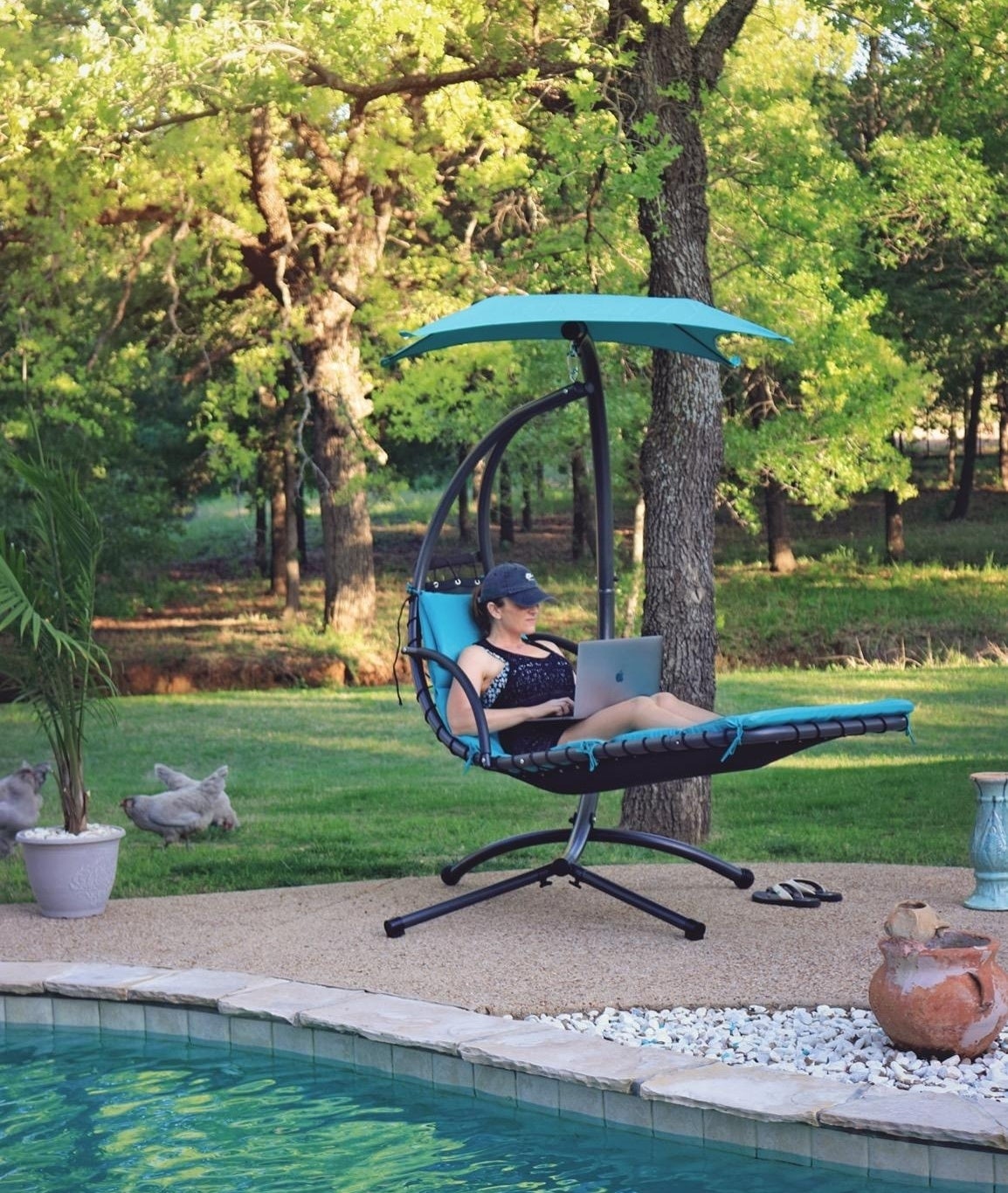 Promising review: "The only problem I have with this chair is: I only have one of them and the whole family now fights over it! Seriously, it is THAT comfortable and relaxing. Pretty easy to put together, my husband got it all assembled in less than an hour and then proceeded to open up a beer and fall asleep in it next to the pool, HA! I like to take my laptop out with me and work on it as the movable umbrella shades my screen. Love love LOVE it!!" —Erin S