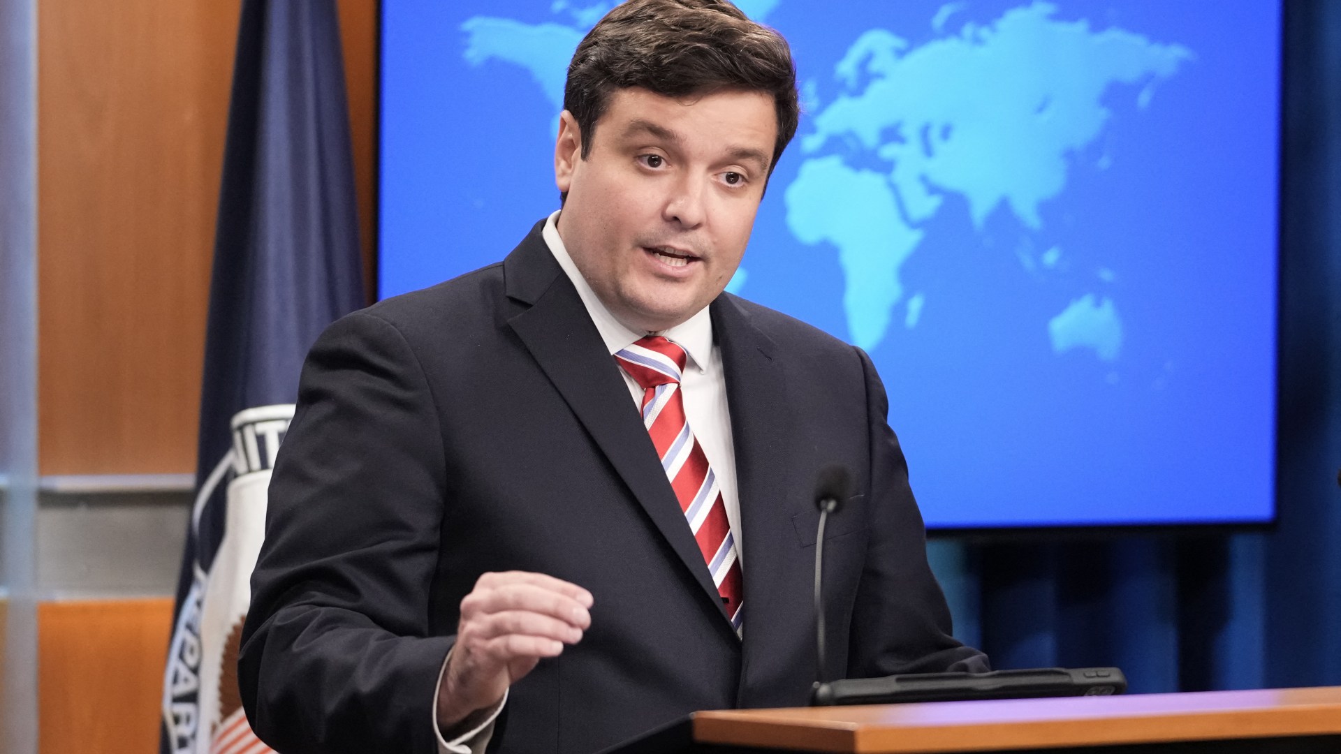 The US State Department spokesperson accused Iran of targeting “civilians and civilian infrastructure” across the region, which he said underscores the “intolerable threat of that Iranian regime having a nuclear weapon”.