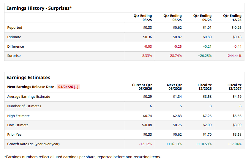 LyondellBasell Industries N.V. (LYB), headquartered in Houston, Texas, operates as a chemical company. Valued at $26 billion by market cap, the company manufactures plastic, chemical, and fuel products. It offers products for the manufacturing of personal care products, fresh food packaging, lightweight plastics, construction materials, automotive, and more. The global leader in developing and supplying materials is expected to announce its fiscal first-quarter earnings for 2026 in the near term.
