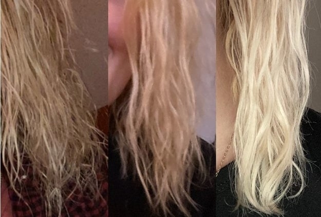 Promising review: "I had seen this product recommended in an article online, and came to Amazon to read reviews. Most seemed so positive that I purchased it, and I am very glad that I did! My hair used to be really shiny. Then I had purple hair for a year, followed by blue for six months (not the entire head. My hair is dark brown, so my stylist highlighted it and then put the purple/blue on top so certain sections popped). When I decided that everyone and their mother was coloring her hair funky colors, I was done. Well, my stylist had the bleach the beejeebers out of my hair to remove all of the funky colors. Ever since, my hair has been dry, crispy, and definitely not shiny. This stuff really makes a difference! I used it maybe 10–14 days ago, and I just redid it tonight. After shampooing, I towel-dried my hair and then put a big blop throughout my long-ish hair and clipped it up. I left it on for quite a while, just puttering around and getting chores done. Then I rinsed it and my hair feels soft and looks much shinier. I will keep using this as long as I need to (it will take a few years to grow out all the damage while maintaining length). I'm really glad that I read that article and bought the product. I've used more expensive products (I'm looking at you, Olaplex) and I prefer this. I've recently been using it daily and not leaving it on more than a minute and I still love its effects. I'd use it even if I suddenly had major money." —Shannon Fraser