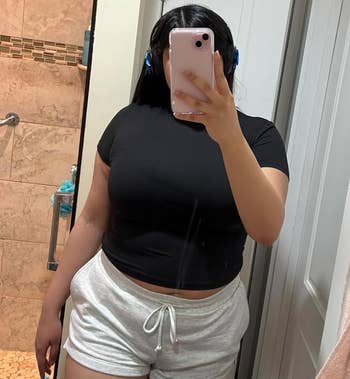 Promising review: "At first, I was a little skeptical — I have been wanting to find a Skims-like material shirt for a while but didn't want to pay the price of one lol, and this shirt feels amazing. I will be getting one in every color now." —Julianne