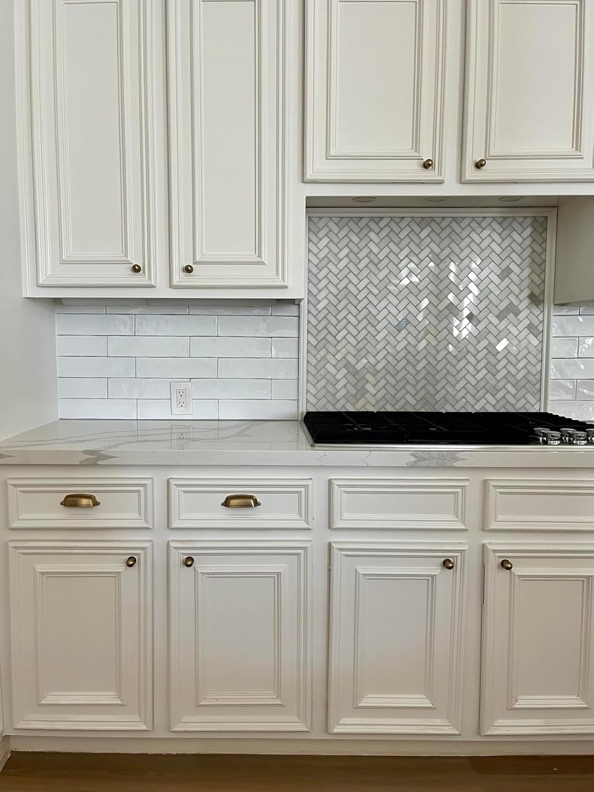 Promising review: "I’ve been wanting to try peel-and-stick tiles for a long time, and I’m so glad I found these for our kitchen facelift! They are so easy to apply and look amazing! I love that they are actual-size subway tiles as well! They’ve given our kitchen the last very important piece that it needed!" —April Grill