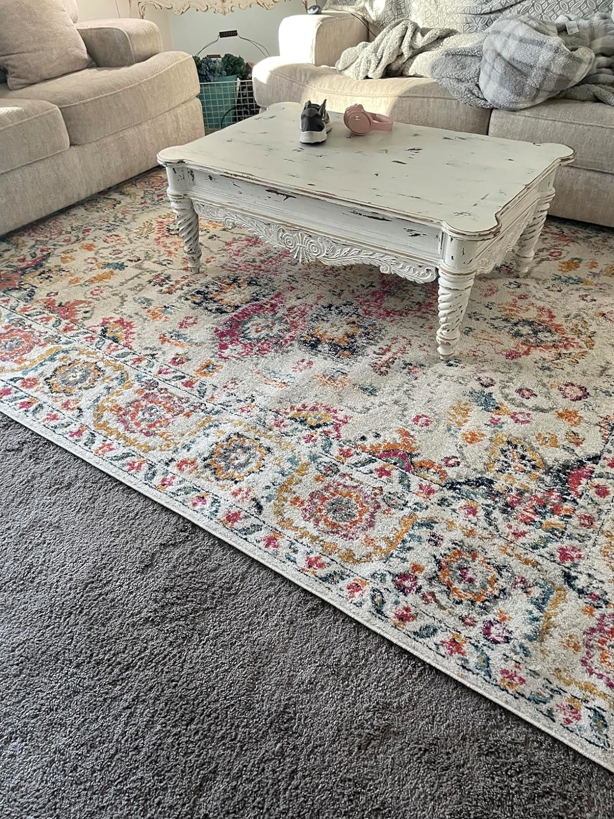 Promising review: "We were looking for a large area rug for our living room but didn’t want to pay an outrageous price. We were just looking for a temporary one until we replace the carpet. But we like this so much we may not worry about replacing the carpet for a while. Because it is such a large rug, I was worried that I would not lay flat. But after just a week or so, it all is laying flat. We laid it on March 20th. Today is March 31st, all nice and flat. I would definitely recommend this rug." —Becki L