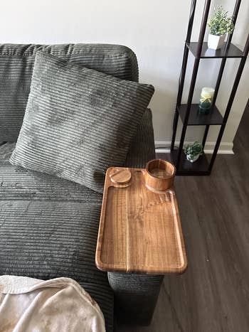 Promising review: "This has exceeded my expectations! The shelf seems well-made and feels sturdy, with plenty of compression to hold it in place. The wood is very pretty, and the cup and phone holder work well. It’s the perfect size — not too big and bulky, while large enough to be functional! I am buying two more for my daughter. GREAT product!" —Amazon Customer