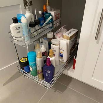 We hope you love our recommendations! While every product is independently chosen by our editors, BuzzFeed and our publishing partners may collect a share of sales or other compensation from the links on this page. You can read more about how our affiliate partnerships work in our Editorial Standards & Ethics Guide. Stylish storage solutions for every nook and cranny. Promising review: "Was easy to install and holds towels nicely in my tiny bathroom. Fits with my very simple decor." —Vanessa Promising reviews: "It was easy to install and it made the under-the-sink organized and uncluttered!" —Ninalou "Under my sink has never looked so good. I don’t have to squat down and try and find the stuff in the back anymore. So glad we found these." —Wendy Promising reviews: "This is a game changer. I installed a corner shower, and it had only two shelves. It is nice-looking." —Anonymous "So easy to put up! Intended for our guest bath, but loved it so much we put one in our main bath. Holds a lot of product." —Michelle Promising review: "So glad I have large cabinet doors because this is a lifesaver so far! Frees up counter spacer, drawer space, and makes my daily items easy to grab still, instead of having to crouch down under the sink." —Cynthia Promising review: "If you have a small space and have extra things to store, this is a perfect choice. It’s also sturdy. I highly recommend it." —Meleta Price: $77.99 (available in three colors) Promising reviews: "Wasn’t sure if I needed it, but glad I bought it. It serves its purpose and gives my bathroom the final touch. I feel like I’m in a fancy hotel bathroom every day!!" —Ericka "The quality is great, very sturdy. We were concerned that it would only work for robes, but our towels with or without a sewn-in loop hang there just fine." —Natasha Price: $29.99+ (originally $46.40; available in four colors) Promising review: "Perfect piece for throwing jewelry and knick-knacks. Looks just like the picture and great quality." —Chase Promising review: "Good quality. Solid. Not rickety like another mirror I had that looked very similar. Smooth arm extension. Clear mirror with no distortion." —Christina Price: $65.99+ (originally $160+; available in five colors) Promising review: "These shelves are the final touch in my newly remodeled bathroom! Just what my walls needed!" —Kelly Price: $80.99 (originally $87.99; available in six finishes) Promising review: "One of my favorite purchases last year. I really love how sturdy it is and how it really improves the bathroom's overall feel." —Anthony Price: $69.99 (originally $99.99; available in four colors) Promising review: "Got these shelves to put in my walk-in shower, and so far they've been fantastic. No assembly required, they look great and are sturdy. Time will tell how well they hold up in a very wet environment." —Scott Promising review: "Great addition to the bathroom decor. Kleenex box, extra roll of toilet paper, all fit well." —Marianne Price: $31.99 (originally $36.99; available in two colors) Promising review: "Excellent solution for a very small space next to my toilet, easy assembly. Good quality and sturdy enough." —Marilyn Promising review: "Fits everything we needed easy and seamlessly. Make the shower look much cleaner." —Chelsea Price: $11.99 (originally $25.92; available in two finishes) Promising review: "I wish I had these years ago! I’ve added more things onto this shelf; it holds everything with ease. They stick to the tile perfectly and are easy to take off if you need to." —Carolyn Promising review: "Such a smart and sturdy cleaning caddy. Everyone should have one OR TWO." —Heidi Promising review: "Perfect cabinet for our bathrooms. They add some style and extra storage. Love it!" —Heather Price: $125.99 (originally $134.99; available in three colors) Promising review: "This was perfect. Just what I needed for my newly renovated small bathroom. It fits nicely in the small space next to my sink, and it is quite sturdy. I would recommend it." —Mo Price: $45.89 (originally $54.99; available in two finishes) Promising review: "Beautiful and quality. Looks perfect in our rustic cabin. It could fit any decor. Simple yet just enough." —Julie Fullerton Price: $209.99 (originally $269.99; available in seven finishes and 10 sizes) Promising review: "These bathroom medicine cabinets are perfect for my space. They are large, but they make up for the limited storage space. I bought two." —Rebecca Price: $159.84 (originally $242.94; available in six finishes and five sizes) Price: $48.30 (originally $55; available in two colors) Promising review: "Well-made baskets, I have a small bathroom and I hung them behind the door to hold hair dryer, brushes, etc. I love them!" —Marilena Promising review: "Perfect addition to my primary bath remodel. Added a natural wood texture to all the porcelain tile." —Lolita Promising review: "Just perfect. Easy to adjust and perfectly holds my books and iPad." —Jamison The reviews for this post have been edited for length and clarity. BuzzFeed Shopping is service journalism first: our writers and editors spend all day shopping so you don’t have to, vetting products, fact-checking brand claims, and surfacing what actually helps in real life. We center readers over revenue, recommend products with authenticity (using real experiences, not ad-speak), and reflect our diverse audience, inclusive of a variety of price points, people, and needs. We cut through fake deals, favor useful info over glossy fluff, and recommend both budget and splurge options with context so you can decide what’s right for you — and still have a little fun along the way. Griffin Gonzales is a Detroit-based freelance contributor and former staff writer, scouting timeless, functional products that make everyday life a little better, who can usually be found daydreaming along the river, hunting for old things, and texting his grandm