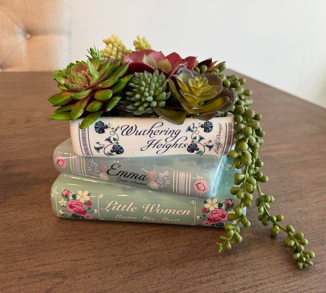 "If you’re a book lover and a plant lover, this planter is for you! It has a drainage hole, and it’s really cute!" —The Rose