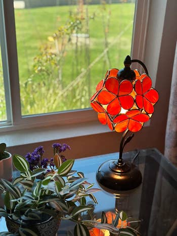 Promising review: "This is such a great lamp for the money! It's very sturdy, heavy, and casts beautiful shadows. The light-pink flowers cast a calming glow around the room. Absolutely obsessed. 😍" —Kathie L. Parker