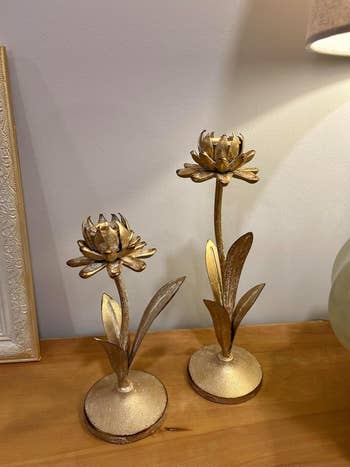 Promising review: "I was absolutely delighted with these candlestick holders from the moment I unboxed them. They are definitely high quality, and the distressed gold finish gives them a beautiful, aged look that feels both classic and sophisticated. The leaves also gently curve, and you can somewhat adjust them, which adds to their organic, artful appeal. I loved the unique look so much that I didn’t even add in candlesticks, but they are solid metal, making me feel confident that they would last and be sturdy with the candlesticks as well. I highly recommend!" —Brooke