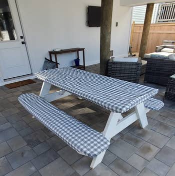 Promising review: "Love this cover! We got one of the wooden picnic tables from HD about 6 years ago and just wanted to squeeze out another season before replacing! Perfect fit!!" —K.A.S.