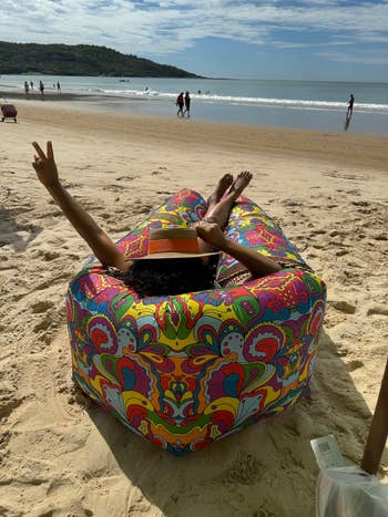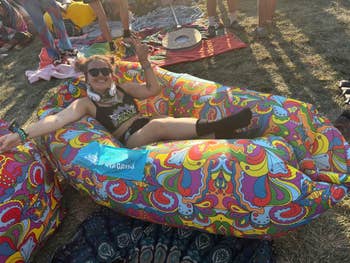 Promising review: "I love this lounger! It is super comfortable and is so simple to inflate! It rolls up into a small compact bag for easy storage when you're not using it. It’s perfect for kayaking, camping, or hiking. If you just want a lazy day reading a book in the backyard, this would be great! I’m seriously obsessed with this thing!" —Sonya