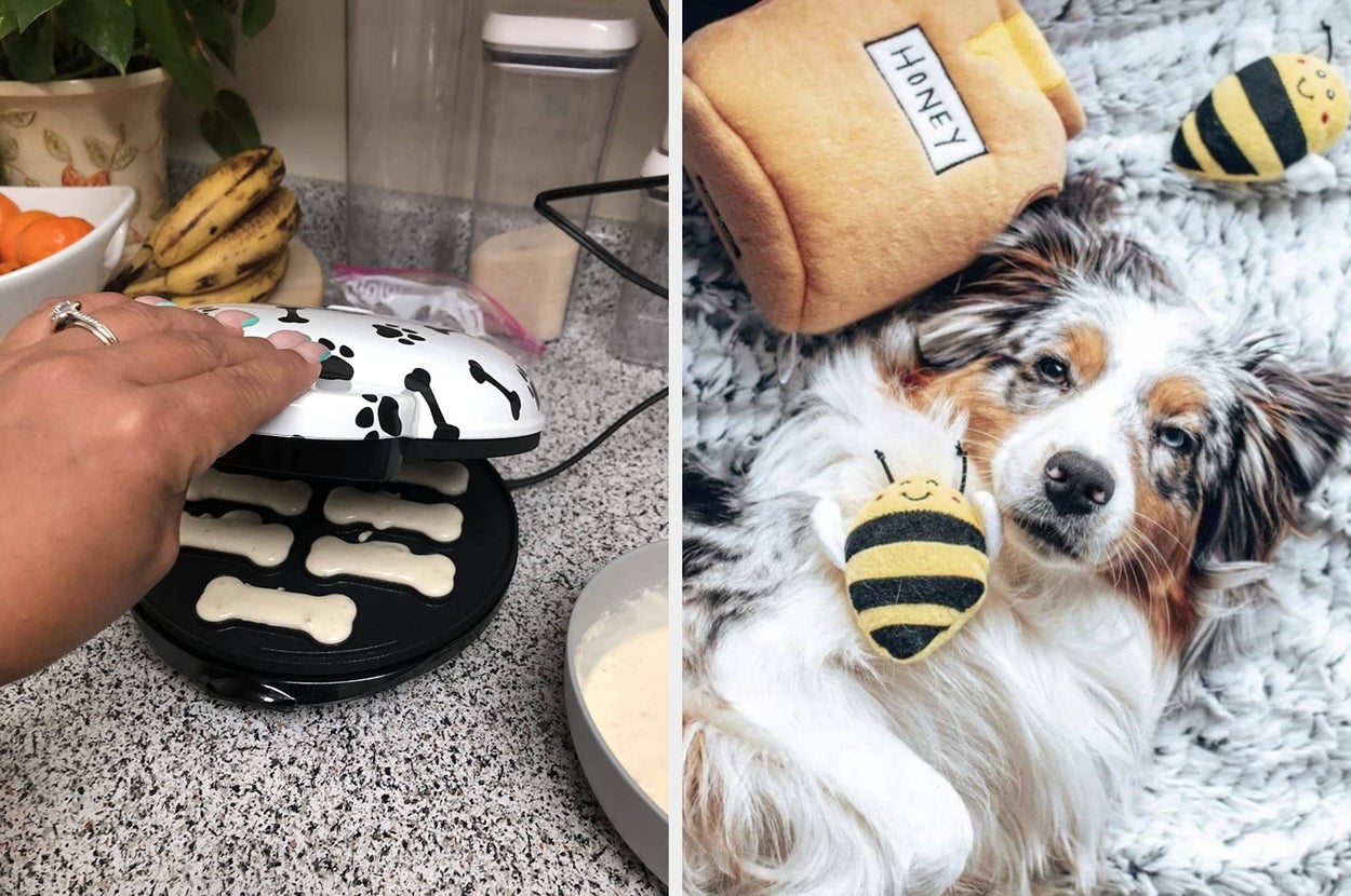We hope you love our recommendations! While every product is independently chosen by our editors, BuzzFeed and our publishing partners may collect a share of sales or other compensation from the links on this page. You can read more about how our affiliate partnerships work in our Editorial Standards & Ethics Guide. No, you don't understand: I would do anything for my dog. Promising reviews: "This puppy ice cream smells great. I bought the maple bacon flavor for my 4-month Chihuahua, and she loves it. The size of the products is good for small dogs. I give her one scoop because she is tiny. This ice cream is perfect for the hot summer days." —Neryna Cuadrado Get it from Amazon for $8.99+ (available in four flavors). Promising reviews: "We were skeptical at first because the dogs weren't quite sure about them, but we can't let ourselves be caught without them now. Our 9-year-old male Australian Cattle Dog likes them occasionally, but our two under-a-year females love them, fight over them, and even fall asleep chewing on them! We especially like these smaller-sized pieces because the longer ones we got before seemed to lose favor with the dogs after a while, but these they can finish and not leave for me to find in strange places." —Danny Scarbro "I have a very easily bored, mischief-prone Australian shepherd-poodle mix, and these are a godsend. They don't stink, she loves them, they last far longer than other edible chew toys, and she remains interested in them all the way to the end. I was so happy to find these on Subscribe & Save at a good price." —Philly Transplant Get a four-pack from Amazon for $26.95 (also available in other pack sizes). Promising review: "My dog loves the treats made in this maker, and I love the relative ease and speed. I wasn't too crazy about the included recipes, but I found quit a few good ones online. The online recipes make between 36 and 48 treats at a time — very generous — and use common household ingredients. Since I have a very fussy dog, I'm glad I found this." —Diane Mettam Promising review: "My dog loves these. We live in the South, so allergies are pretty serious here. When spring came around, I noticed he was constantly gnawing at his paw and not eating as much as he used to. I did some research and found this product. I was skeptical, as he’s kind of picky, but he is obsessed with them. He waits at the pantry door every morning for them. He thinks they are treats. I noticed — within hours — that he was no longer gnawing at his paw, and his appetite was also back to normal. When he finished his first tube of these, I decided to wait to order more and see if they really worked or if his allergies just wore off. A few weeks went by, and I noticed him gnawing at his paw again and not eating. I ordered them on Sunday, and he’s back on them again. He was so excited to see them again and is no longer gnawing at his paw. :)" —Alyssa Get 90 chews from Amazon for $19.97+ (available in five styles). Promising review: "Got this for my 24-lb dog, as he usually lies on the concrete patio when we’re all outside, with the sun blazing down on him. Got it set up and didn’t even have to coax him onto it. He loves it! He’s so comfortable and definitely cooler with that canopy over him. It’s also held up well through the heat, rain, and some surprisingly strong windstorms. Definitely recommend." —Prairie Dove Get it from Amazon for $34.99+ (available in three sizes and two colors). Promising review: "This was a huge hit, both of our chocolate labs LIVE for peanut butter. Instead of the yogurt icing, I melted some actual peanut butter in the microwave and used that as icing instead. Chuckie could barely wait for it to bake!" —aim1030 Promising review: "This is my first Fourth of July with my rescue dog, and I didn’t know how she was going to react to fireworks. I bought this ahead of time just in case, and I'm so glad I did. She started shaking and panting as soon as they started going off. I put this on her and she almost immediately stopped trembling, and now she is asleep! I honestly had my doubts that something so simple would work." —weez Get it from Amazon for $49.99+ (available in seven sizes and two colors). The heartbeat has two modes: 24-hour continuous use or 8-hour use with automatic shut-off. It comes with AAA batteries and a one-time-use heat pack. Snuggle Puppy is a small business that was created in 1997 by a breeder who wanted to help a litter of puppies transition to their new homes. It ended up being so effective that the line was eventually expanded to help other pets with stress and anxiety. Promising review: "This product is genius! Ten stars! Well-made, with clear directions for use. I have an elderly pug who has become increasingly needy. I can't sit with her all day. I tried snuggling her next to articles of my clothing or a shoe. She still cried and whined. So I searched online for some sort of calming dog product. After watching the video, I ordered Snuggle Puppy, and it arrived the same day. I had it out of the wrapper and next to my pug in five minutes. She rubbed her head on it so I knew she liked it. I turned on the beating heart, and no more crying and whining. I should have purchased this a long time ago." —Clarabella Get it from Amazon for $39.95 (available in seven colors). Promising review: "My English Mastiff (and the biggest baby ever) loves his ducky. He has ripped up other toys, but not his beloved duck. He has had it for a few months now and brings it everywhere around the house with him, even sleeps snuggled up with it. I don't know why dogs seem to love this toy so much, but I would highly recommend purchasing." —Kristen Promising review: "My pet loves this bed. It's easy to clean and very soft. I've spent a fortune on other beds and he never went near them. This one has a great price and he is in it all the time." —S.B. Get it from Funny Fuzzy for $58.76+ (originally $113+; availa