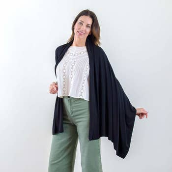 We hope you love our recommendations! While every product is independently chosen by our editors, BuzzFeed and our publishing partners may collect a share of sales or other compensation from the links on this page. You can read more about how our affiliate partnerships work in our Editorial Standards & Ethics Guide. You'll have never been more prepared for your trip across the pond. Check out this TikTok showing the luggage scale in action. Promising review: "We use this in every trip to avoid paying for extra weight as we travel internationally quite often. I have tested in several ways and have always noted the weight number at the airport. After several trips, I can say that its accuracy is right within two pounds. I have had it for almost two years, and I am still using the same batteries." —Cass Young Get it from Amazon for $9.88+ (available in two styles, six colors, and a two-pack). Promising review: "My apartment door has a deadbolt but no lock on the door handle. The latch is also misplaced, so if it’s not dead-bolted, anyone can just push my door open. Took a few tries to get this right, but makes me feel much more secure, and it’s easy to use when you get the hang of it! I also take this with me when traveling, as it fits almost all doors. Definitely recommend." —Anna Get it from Amazon for $11.99 (also available in multi-packs). Hackwith Design House is a woman-owned small business that creates made-to-order apparel. This shirt can be worn as a V-neck, off-the-shoulder, boatneck, V-back, and even open as a jacket. And the color is simple, which means it can be paired well with many different bottoms. Promising review: "I’m being honest when I tell you this is the most 'worth-it' top around. I read a review from a frequent flyer who claims this is her go-to for flying. She said aside from the top’s flexibility – which allows much less packing as the top itself looks and behaves like four shirts and a jacket – it’s a savior on planes because it allows you to get into a usually overheated plane, and to weather the transition to iceberg, ho! that happens about twenty minutes into most flights, and it holds its shape and looks great. I was skeptical, as I do not have the money to blow on someone else’s opinion, but my husband told me to try it. I have the same issues with temps, and he’s probably self-protecting so as not to hear me complain so much. Long story short, I got it. It’s a gorgeous fabric despite my usually hating the ribbed thing. Not for my pleasure, thank you. But it’s nice. REALLY nice. Yes, it’s extraordinarily flexible, and yes, it’s like a jacket, and yes, Virginia. There is a travel shirt Santa Claus. Ordering in the off-white now. Glad I read the article, and glad I bought the shirt. You should too." —Mary B. Get it from Hackwith Design House for $145 (available in women's sizes XS–4X and three colors). Promising review: "I couldn't be happier with this light. I use it for reading in bed and when I travel. It's comfortable, has different settings, is easy to use, and the battery stays charged for a long time. You can turn on either one or both sides of the light, and its flexibility allows the light to be adjusted easily. I highly recommend this light for reading in bed, for outdoor walking at night, and for doing close work that requires good lighting." —Jean G Get it from Amazon for $19.99+ (available in five colors). You can opt for up to three letters in gold or silver lettering, in the top middle or bottom right. Promising review: "Beyond thrilled! Best customer service, impeccable response time, super-fast shipping, and an amazing product!! Such high quality. Will order many more times in the future! Also, a note to all those of you who have two passports — it's very hard to find a passport holder that holds two passports! This one does!" —Chaya Get it from VITT Custom Studio on Etsy for $34.99+ (available in 24 colors). Promising review: "I am a terrible flyer who recently took the red-eye from Dubai to Chicago (15 hours). The Trtl pillow was a mini lifesaver! I was able to comfortably rest my head on the support and felt warm enough to actually doze off... A rare accomplishment for this skittish flyer. The hook and loop closures work wonderfully with regard to adjustment, and I liked wrapping the fabric around my mouth and nose. Sort of felt cozy... Even if I did look like a ninja in a neck brace! Overall, this product has changed the way that I fly, and I am so thankful for this invention and the opportunity to support a small company with big ideas." —S.Viruly Get it from Amazon for $59.99+ (available in four colors). Promising review: "I bought these to wear under dresses for a trip to Europe because it was supposed to be really hot, and they worked great. They were light and stretchy, with no chafing. Maybe not the most moisture-wicking, but they were very comfortable, and I wore them several times." —Meghan O'Leary Get it from Thigh Society for $44+ (available in women's sizes XS-6XL, six lengths, and 11 colors). Promising review: "These worked well for drying clothes in hotels during an extended international trip. Durable and easily stored in luggage when folded. Highly recommend for travel." —GCaD Get a pack of 12 from Amazon for $8.99 (also available in packs of 24 and 36). Promising review: "I absolutely love this wrap!! It is the perfect weight and size for travel. It didn't leave my side on an 11-day backpack trip through Europe and was used as a scarf, blanket, towel, and wrap all through the trip. Fashionable enough to dress up a basic travel day outfit, warm enough to keep away a chill on a cooler night, and light enough to pack away small into a bag or tie around a purse strap. I can't say enough great things! I am buying these as gifts for everyone I know who travels." —Jenn Get it from Amazon for $42.99+ (available in 11 colors). Visit the product page for special coupon pricing. Promisi