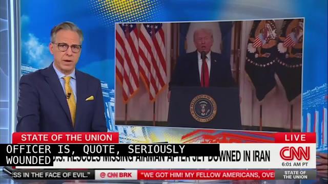 Jake Tapper did not shy away from quoting President Donald Trump's expletive-laden threat to Iran in a stunning moment on CNN Sunday