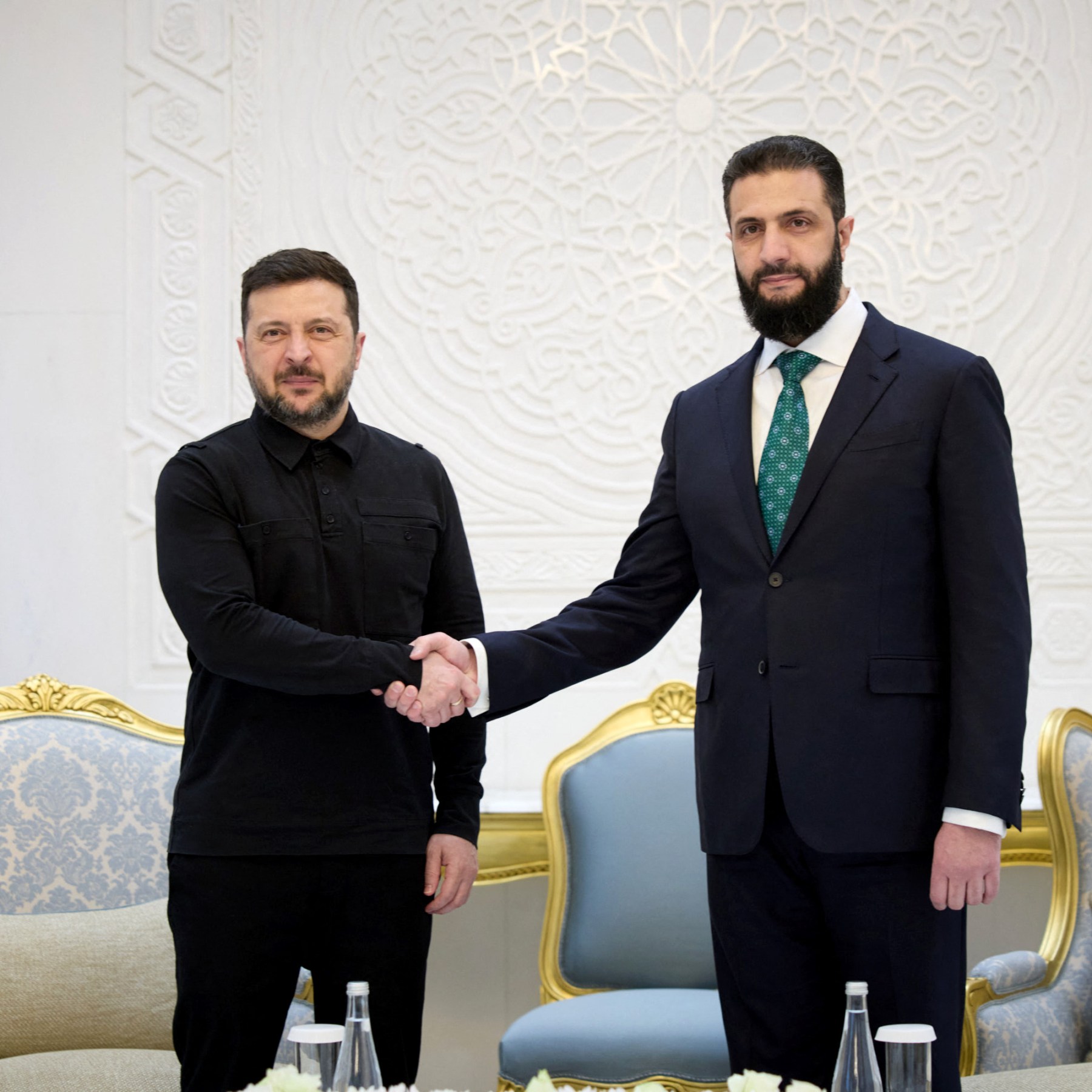 During a trip to Damascus, Ukrainian President Volodymyr Zelenskyy said the two countries agreed to work together to provide ‘more security and opportunities for development for our societies’. Save Share The leaders of Ukraine and Syria have pledged greater security cooperation, President Volodymyr Zelenskyy said, as Kyiv offers its military expertise to governments across the Middle East region amid the US-Israeli war on Iran. Zelenskyy held talks with Syrian President Ahmed al-Sharaa in Damascus on Sunday, in his first trip to the Syrian capital since former leader Bashar al-Assad was ousted in 2024. Zelenskyy wrote on Telegram that the leaders agreed to work together to provide “more security and opportunities for development for our societies”. “There is a great interest in exchanging military and security experience,” he said. Since the war began on February 28, Iran and its allied groups have attacked US and Israeli targets, as well as targets in Gulf countries, using a range of missiles and drones. Ukraine, which has developed expertise in countering drone attacks in its more than four-year war with Russia, has offered its country’s expertise during Zelenskyy’s visits to countries in the region, and has sent teams to Qatar, Saudi Arabia and the United Arab Emirates. During his visit to the Gulf states last week, Zelenskyy signed long-term military cooperation deals with Saudi Arabia and Qatar. Syria is not known to have any air defences capable of dealing with Iranian drones or missiles. Zelenskyy also told al-Sharaa that Kyiv was a reliable grain supplier and said the two leaders “discussed joint opportunities to strengthen food security across the region”, According to Turkiye’s Foreign Ministry on X, the country’s foreign minister, Hakan Fidan, also met Zelenskyy in Damascus on Sunday, as well as his Syrian counterpart, Asaad al-Shaibani and Ukraine’s Andrii Sybiha. The meeting with foreign ministers came a day after Zelenskyy visited Turkiye, met with President Recep Tayyip Erdogan, agreed on “new steps” in security cooperation, and discussed joint gas infrastructure projects and gasfield developments.