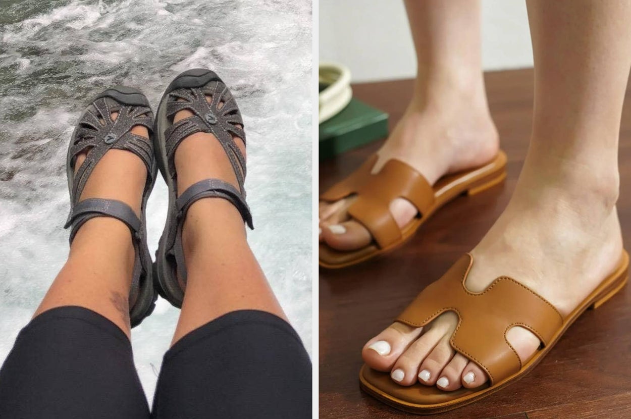 We hope you love our recommendations! While every product is independently chosen by our editors, BuzzFeed and our publishing partners may collect a share of sales or other compensation from the links on this page. You can read more about how our affiliate partnerships work in our Editorial Standards & Ethics Guide. Comfy *and* cute footwear to take you through all your warm-weather adventures. Unless otherwise specified, all sizes in this post are listed in women's. Promising review: "Obsessed with my new Dr. Martens Nartilla sandals! They're the perfect blend of edgy and comfy. The leather is amazing quality, and the gladiator style is so versatile. I've gotten tons of compliments already. Definitely a must-have for alt girls in the summer! Originally bought an 8, and they were too long. Returned and purchased a 7, and the length is perfect." —Heather Get them from Amazon for $64.21+ (available in sizes 5–11 and four colors). Promising review: "I bought these because I like to wear them when I'm at home lounging around. These sandals are comfortable and I can wear them for hours without my wide feet hurting." —RoseO Get them from Amazon for $16.28+ (available in sizes 5–19W, 4–18M, and tons of colors). Promising reviews: "Great fit and good-looking sandals. 👌" —Glenn M. "I love the Arizona style. They are easy to adjust and easy to slip on and off. I suffered from a heel spur, and I was able to walk without pain when I changed over to the Arizona sandals. I took several pairs of shoes on vacation, and never once did I switch over to a different pair. I can walk for long periods of time with comfort. They are my first choice of shoes." —Glenn B. Get them from Amazon for $96+ (available in sizes 5–16W and 3–13M, including narrow sizes, and in 17 styles). Promising review: "I love my new Keen Rose sandals. I was looking for a lightweight, comfortable, and stylish sandal for my trip to Spain in the fall, and they fit the bill. They’re perfect to wear with jeans, shorts, tights, skirts, and casual dresses. They are very comfortable with a little extra room in case my feet swell after a long day of walking. The beautiful rosewood color was exactly what I expected. I also own Keen hiking boots and sandals, and I love the fit, quality, and durability of Keen footwear. My sister tried mine on when they arrived and immediately ordered a pair for herself." —Shirley G. Get it from Amazon for $95.11+ (available in sizes 5–12 and 17 colors). FYI: many reviewers suggest sizing down! Promising reviews: "Love these shoes! I wear these all summer, with shorts, dresses, everything!!! They’re super comfortable and durable. I can walk for hours in these. I have them in five different colors." —mimi13 "These slides are — and I mean this in the best way — marshmallows that mold to your individual feet. They are SOOOO comfortable. I’ve been working from home since the start of the pandemic, and I ordered them to wear in my house after I read that walking around barefoot long-term isn’t great for your feet. I wanted something with a little support, but that would be comfortable. The reviews for these looked good, so I ordered a pair, and now I never want to take them off. The material in every part is molded and squishy, so there are no unexpected parts that dig into your skin or chafe. But they’re structured enough to provide some support for your arches. 10/10 highly recommend!" —Carrie B Get them from Amazon for $23.99+ (available in sizes 4–16W, 3–14M, and 15 styles). Promising review: "I purchased these last summer because they were recommended for plantar fasciitis sufferers, and I have not been disappointed! These are casual and perfect for everyday wear, and I can wear them for hours and hours of walking without any discomfort. I really am happy with these flip-flops!" —INcatlady Get them from Amazon for $38.99 (available in sizes 6–11 and 24 colors). Promising review: "Best sandals I've ever purchased. Super comfortable, even when walking in them for many hours. Dressier than most flip-flops. Most shoes that are comfortable are really unattractive, but not these. Expensive, but worth it!" —cjkotro Get them from Amazon for $44.17+ (available in sizes 5–12, including wide and narrow sizes, and 10 styles). Promising review: "Super supportive. Most comfortable sandals I own. I had these in a tan color and loved them so much I bought the black ones. They have nice arch support and are pretty secure for a slide sandal. I walked for hours on a Saturday in these, and my feet felt great. My back also felt good — not like after wearing the regular flat flip-flops. I will probably get another color. They run very true to size. You can tighten or loosen both straps for a more snug or loose fit as needed." —Lisa Lazaro Get them from Amazon for $34.99+ (available in sizes 5–12, including wide sizes, and 20 styles — not all styles available in all sizes). Promising review: "This has to be the most comfortable wedge I’ve ever owned. I walked up and down the Atlantic City boardwalk for hours. Not a hint of discomfort. Mind you, I have a neuroma issue. Felt like I was walking around in sneakers. Definitely recommend." —Natasha C. Get them from Amazon for $39.99+ (available in sizes 5.5–11, including wide sizes, and six colors). Promising review: "These little sandals are the best ever. They are so cute and comfortable. True to size and goes well with sundresses, skirts, and shorts. Just an all-around cute sandal." —J. Mck Get them from Amazon for $19.40 (available in sizes 5–15, including wide sizes, and seven colors). Promising review: "Don't hesitate any further, just buy them! I am super picky about shoes, especially sandals, and these are so comfortable. I wore them for hours walking around downtown and no blisters, no discomfort, nothing. They look amazing, too!" —Summer Get them from Amazon for $29.99+ (available in sizes 5–12, including