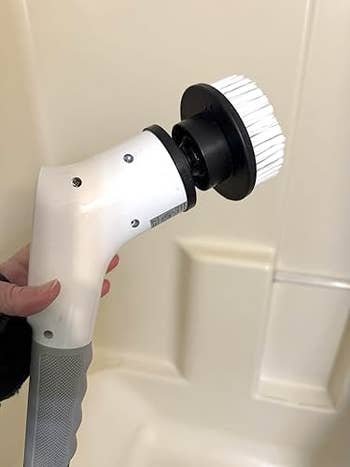 Promising review: "Wow! It's like having a mini, powerful cleaning assistant. The different brush heads are fantastic – the flat one is perfect for large surfaces like the shower walls and floors, the corner brush gets right into those tricky edges around the sink and toilet, and the dome brush is amazing for curved areas. Instead of scrubbing with all my might, I just guide the scrubber, and it does all the hard work. Soap scum in the shower that used to take ages to remove? Gone in minutes! Burnt food stuck on my stovetop? This thing tackles it like a champ. The battery life is also surprisingly good. I can usually get through a whole bathroom and kitchen cleaning session on a single charge." —Carlos M