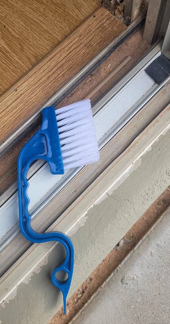 Promising review: "This is fantastic for cleaning the narrow space between where the metal sliding door track meets the plastic edge of the shower. Normally I'd use an old toothbrush and cotton swab but this is way better. It is decent quality and comfortable to hold while digging into the corners and scrubbing. The pointy end is great for putting a paper towel into the deep corners to dry or get gunk out." —Bonzarelli