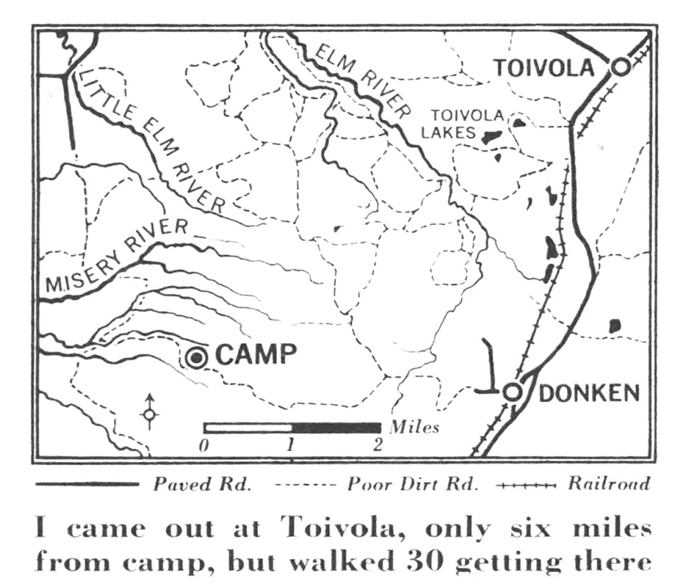 This story, “I Made My Death Bed,” appeared in the April 1965 issue of Outdoor Life. When the time came for the 1964 deer season, my dad was unable to go, so I took his place in a party of seven hunters who had camped and hunted together for several falls in roadless country in Houghton County in the upper peninsula of Michigan. My six partners were Bill Vander Bos, captain of the group, his son Bill Jr., his brother Ralph, neighbor Gordon Coates, and Maurice Van Zoeren and Thane Barkwell. All were from Grand Rapids or its suburb, Jenison. I’m also from Grand Rapids. I knew none of the six well, but they turned out to be a good party to hunt with. We left home about 2:30 a.m. on Thursday, November 12, two days before deer season was due to open in the area where we intended to hunt. We were driving a converted bus that was equipped to serve as our camp and were towing a jeep. Our campsite lay in a tract of hills, ravines, and swamps between the Elm and Misery Rivers, west of State Highway 26 and east of Lake Superior, about 20 miles south of the city of Houghton, in the region known as Michigan’s Copper Country. We drove steadily and reached the village of Donken, where we left the highway, in midafternoon. There we turned off on a rutted logging road and followed it for five miles to the place where we were to camp. The campsite was at the top of a big hill, high enough so that we could look out over rough, broken country and see Lake Superior miles away in the distance. The other members of the party were familiar with the area, having hunted there three or four years, but it was brand-new to me. Related: The Best Survival Kits of 2026 In fact, I had been in the upper peninsula only a few times and had seen the Copper Country before. But I was by no means a beginner in the woods, and I had no reason to think anything out of the ordinary was going to happen on this deer hunt. I’m 33 years old, a technician in the engineering department of the Blackmer Pump Company in Grand Rapids, and my wife Bonnie and I had celebrated our first wedding anniversary about a month before. I have two foster children, Linda, 5, and Michael, 10. I’ve lived in Grand Rapids since I was 13, except for a four-year hitch in the Air Force, and I have hunted and fished all of those 20 years. I started hunting deer when I was 18. I also spent 16 months in Alaska while in the service and managed to get in quite a bit of hunting there. All in all, I thought I knew how to take care of myself. We spent Friday getting camp organized and scouting nearby areas for deer sign. At daylight Saturday morning, we were in the woods. The weather was cold, and, except for the fact that there was no snow for tracking, conditions were ideal. The hunting proved to be good, and three bucks were killed that first day. Then our luck fell off. A heavy fall of wet snow came on Monday night, and before the storm ended there were 12 to 14 inches on the ground. After that we saw little deer sign in the vicinity of camp. In three days of hunting only one of us got a shot at a buck, and the one member of the party who had a doe permit did no better. We concluded that the storm and deep snow had driven the deer down out of the hills and into their yarding areas in the swamps to the west toward Lake Superior. We were to leave for home Friday noon, and the only deer on the meat pole Thursday night were the three that had been shot on opening day. It looked as if four of us were due to be skunked. But I voted for a last-minute try, and Bill Vander Bos Jr., Gordon Coates, and Ralph Vander Bos felt the same way. We started out right after breakfast, planning to be back around noon. The other three would break camp. I headed for a small swamp to the north, found old tracks, and in less than half an hour jumped a deer and got one quick glimpse of him, enough to see that he carried a rack. He lit out northwest, and I took after him. Tracking conditions were perfect, and the snow was deep and heavy enough to tire a deer. I had heard many times of walking a buck down under those circumstances, exhausting him, and getting close enough for a shot, so I made up my mind to try it. It might mean I’d be a little late getting back to camp, but my partners would wait for me. I’ve always made it a rule on deer hunts to let someone in the party know where I am going each day and in what direction I intend to hunt. That’s no more than a sensible precaution in case something goes wrong, and the thought ran through my mind that if I followed this buck I dian’t know myself where I’d wind up. But, if I hoped to overtake him, there was no time now to go back to camp and report my plans. And anyway, my companions could track me if the need arose. In jumping to that conclusion, I overlooked two factors. I had neglected to tell them that I intended to hunt north of camp, though I had mentioned it would be a good area to try. But somehow the whole party thought I had gone south. And the area around our bus was so tracked up by that afternoon that it was impossible to follow me. I moved along at a good clip, but it wasn’t long before I realized that the deep snow was as much of a handicap to me as it was to the deer. For the first hour, he traveled steadily north-west, angling back and forth but keep-ing generally to that same direction. Then he turned southwest, dipping down into ravines along the creeks, following them briefly, climbing the next hill, dropping into another swamp. I had jumped him north of the logging road on which we were camped, but it wasn’t long before he took me across it and on to the south. I recognized the rutted trail and made a mental note so I could find my way back. I lost the buck after two hours of tracking when he went down into a yarding area in a swamp where the snow was crisscrossed with deer tracks. There was nothing to do but go back to camp. I still had an hour until noon, and if I hurried I’d be only a littl