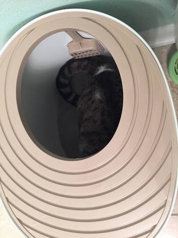 We hope you love our recommendations! While every product is independently chosen by our editors, BuzzFeed and our publishing partners may collect a share of sales or other compensation from the links on this page. You can read more about how our affiliate partnerships work in our Editorial Standards & Ethics Guide. This self-emptying litter box is actually about to become your new favorite thing. The hands-free cleaning cycle runs 20 minutes after your cat leaves the litter box, moving their waste to a leak-proof, odor-controlled, and disposable tray underneath. Also grab a bag of scoop-free crystal litter and tray refills, too. Promising reviews: "This litter box is a must for any busy family that struggles to keep up with the daily maintenance of having a cat and a litter box! It works well, and my cat is so happy always having a clean litter box." —Kelsey Jeffries "I rarely write product reviews but this litter box actually made a huge difference for my house! I have had a cat for about 10 years who decides to do the number 2 about two feet outside the litter box. He has ALWAYS done this, no matter what type of litter or box. I even asked my vet about it, and his response was, 'Some cats are just jerks.' 😂 Then I got this litter box. For the first time EVER, he does ALL of his business in the box! And there is no odor at all!! I love it so much I have two. Would highly recommend!!" —Emily Stokes Reviewers say it works for both small and bigger cats alike! One reviewer's tip: Make sure the side without the grooved lid is facing a wall so that cats can't jump out that way (the grooved side is what prevents litter tracking). Note that if you have a senior cat with limited mobility, you'd want to provide a litter box with low, easy access for that cat. Promising review: "We have three cats and have to manage a silly amount of cat politics. We've learned that having a higher number of litter boxes, and spread to different locations, cuts way down on bullying and helps cats to feel safe, [as they are] instinctively territorial about where they put their scent and feel vulnerable when they're 'in the act'. This cat box helps to be able to have boxes in rooms of the house where a cat box would feel garish, not to mention the litter mess. It took a little while for my cats to try it out but they're using it now and don't get to kick the gravel out everywhere (I swear they do it on purpose)." —Dism Get it from Amazon for $33.99+ (available in four colors). BuzzFeed Shopping editor Jenae Sitzes and her cats approve of this: "Both of my cats took to this fountain immediately — I do feel like they drink *way* more water with it around, and I love not having to stress about refilling their water bowl every single day. I did take the flower waterfall off of mine (as shown in the gif above); you may find your cat prefers that. It's super quiet with only the lightest trickling sound (which is honestly kind of relaxing), and it gets louder when the water gets low inside, signaling to you that it's time to refill. I always do a quick clean with soap and water at that point, too — it takes no more than a few minutes. Just be sure to do a deep clean of the filter every so often, too. It pops open really easily for cleaning!" Get it from Amazon for $27.98+ (available in three colors and an even larger-capacity model). Jenae says, "I've owned these microchip pet feeders from Sure Petcare for a few years now, and while it was a pricey investment, I consider them worth every single penny. They alleviated a ton of stress when I owned a cat (who has since passed on) who was always wanting to gobble down his brother's meals and had a tendency to be overweight in his younger years. Separating them for meals just wasn't working — they would whine at the door and simply not eat enough unless they could eat side by side and have free access to food throughout the day — but I also couldn't be sure that my younger cat was eating enough with his brother gobbling up part of his meals, too. When my vet started throwing around the word "diabetes" as a very real concern if Sneaky didn't start sticking to a controlled diet every day, I knew I needed to finally cough up the money for microchip feeders — I mean, it'd be a drop in the bucket compared to the long-term cost of cat insulin. "The setup was ridiculously fast, the open-close function works beautifully, and my cats learned how to use these almost immediately. Finally, Sneaky could *only* eat what was in his feeder, which allowed me to control his calorie intake and see exactly how much food he's eating daily — and I could be sure that my other cat was getting *enough* food, too. This is also a fantastic solution if you have cats on different diets due to health reasons, and if one of them starts eating way less for some reason, you'll know immediately and be able to report that to your vet. I also love that the feeder comes with both split and regular bowls — I used the split bowls to serve my cats both dry food and wet food at once! "BTW, I have the basic microchip feeder (because it was the only option in stock at the time), but there's also a Wi-Fi-enabled option that connects to the Sure Petcare app for monitoring eating habits, weighing food portions, and more." Get it from Amazon for $199 (feeder bowls available in four colors). Promising review: "This is an excellent product. I bought this to replace my previous one that I accidentally broke. The Genie keeps the bathroom litter box odor-free. I have three cats and one litter box and even with three, I only dump the bags every THREE WEEKS (or so) so it saves me having to make several trips to the outdoor garbage bins every single day. The only thing I don't like is that I can't find cheaper inserts for it any longer so I have to purchase the more expensive Genie ones but that's really my only complaint." —Coryelle Get it from Amazon for $25.99 (includes about 2.5 months worth of refill