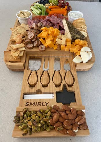 We hope you love our recommendations! While every product is independently chosen by our editors, BuzzFeed and our publishing partners may collect a share of sales or other compensation from the links on this page. You can read more about how our affiliate partnerships work in our Editorial Standards & Ethics Guide. Watch out — your place is about to get its very own ✨aura✨. Promising review: "I first saw this lamp at a friend’s friend’s house and immediately knew I wanted one too. After using it for half a year, I’m still very happy with my purchase! It provides plenty of light while creating a cozy and inviting atmosphere in the room. The interchangeable filters are a nice touch — I like switching them out occasionally to keep things fresh, and having three sets included is really convenient. Assembly was quick and straightforward, which is always a plus." —D. Check out a TikTok of the cheese slicer in action. Promising review: "My mother-in-law had purchased one last year, and I tried hers at Christmas and fell in love with how easy it was to use. We have a lot of get-togethers with friends, and cheese is a staple appetizer in our house. So I purchased my own and have been using it weekly since. It cuts easily, and it's mostly easy to clean. Sometimes cheese gets stuck in the crack, but some scrubbing with a small brush usually does the trick." —Jessica It comes with an extra round tray, two slate labels (with chalk), two ceramic bowls for dipping sauces, and four slicing and serving utensils. Promising review: "Bought the product as a present for my partner for the holidays. The charcuterie cheese board itself is great, and the ability to store the cheese knives was an excellent addition for transportation and to 'wow' people at parties. I was able to host twice with the device, and it was often able to hold around six to eight cheeses and cracker combinations reasonably well without feeling like the device was crowded. I also like how easy it was to clean, since the drawer used to store the knives can be easily removed. Finally, I enjoyed all the additional items that came with this set." —Amazon Customer Get it from Amazon for $39.99+ (available in four styles). Cup Cozy Pillow is a small business that specializes in family-friendly snack and drink organizers. Check out a TikTok of the Cup Cozy Deluxe Pillow in action. Promising reviews: "This thing is great! I’m home on maternity leave with my new baby and spend most of my time on the couch under a sleeping baby. This product makes it easy for me to keep my drinks, remote, etc., close by, even with dogs running around. It’s a little more expensive than I would have liked, but it works, and I love it, so money well spent!" —Amber "Must have for couch potatoes. This thing is amazing. I would get so irritated because there is nowhere to put my cups while sitting on the couch, so I went looking for something like this. I didn't even know it existed, but figured I wasn't the first person with this (first-world) problem. It fits all sizes of glasses, even ones with handles. I keep the remote, and my eye drops in one slot. So happy I found it!" —Erin R. Deatrick Get it from Amazon for $34.99 (available in nine colors). Here's what former BuzzFeed Shopping editor Abby Kass says about it: "I've been using a similar one for years, and I still swear by it. It's so much cheaper than buying microwave popcorn all the time, not to mention better for you. It's super easy to use and makes delicious popcorn in minutes. Plus, it's collapsible, so it won't take up a lot of room in your cabinet. You *can* use it as its own bowl, but it's usually pretty hot after coming out of the microwave, so I usually just transfer to another bowl so I don't have to wait for it to cool." Promising review: "Absolutely amazing! I am throwing out my old popcorn maker because there is no need for it anymore. I cannot believe how easy it was to make perfect popcorn and use the same bowl to eat it out of. I've already told all of my friends to buy this!" —Cindy Suy Get it from Amazon for $9.99+ (available in 19 colors). Promising review: "If you’ve ever craved that unmistakable movie-theater popcorn taste at home, this seasoning is your secret weapon. After one batch with this salt, my kitchen smelled like the lobby of an old-school cinema — and the popcorn had that perfect balance of salty punch and vivid golden glow that makes you reach for 'just one more handful.' The salt is fine enough that it clings to every kernel (no sad, soggy flakes crashing to the bottom of the bowl). It’s generous enough for dozens (maybe hundreds) of movie nights, which makes it a pretty solid investment if you like binge-watching your favorite films. If you’re on the fence about giving your popcorn game an upgrade, take the leap — your taste buds (and maybe your couch mates) will thank you." —Ronnie Roberts Here's what BuzzFeed Shopping editor Jenae Sitzes says about it: "I own the old version of this light (before this newer model was released) and still absolutely love it. First of all, it's SOOO easy to put on the wall — it comes with these little adhesive plastic brackets that you just slide onto the rope and then press against the wall, and continue adding them as needed to support the shape you're making. The Govee app makes it so easy to program the lighting however I like, and it's upgraded my nighttime cozy vibes in a MAJOR way. Also, I recently moved apartments and re-mounted my Govee rope light in a different shape on my new wall, and it was just as easy as the first time (just be careful removing the adhesive brackets, as it can rip paint off — this happened to me with one of them, but we patched it easily). I'll probably come back for this improved model eventually, which is made of even more flexible, softer materials and has improved lighting effects and upgraded bend clips. Plus, they now only offer this light in 9- and 16-foot le