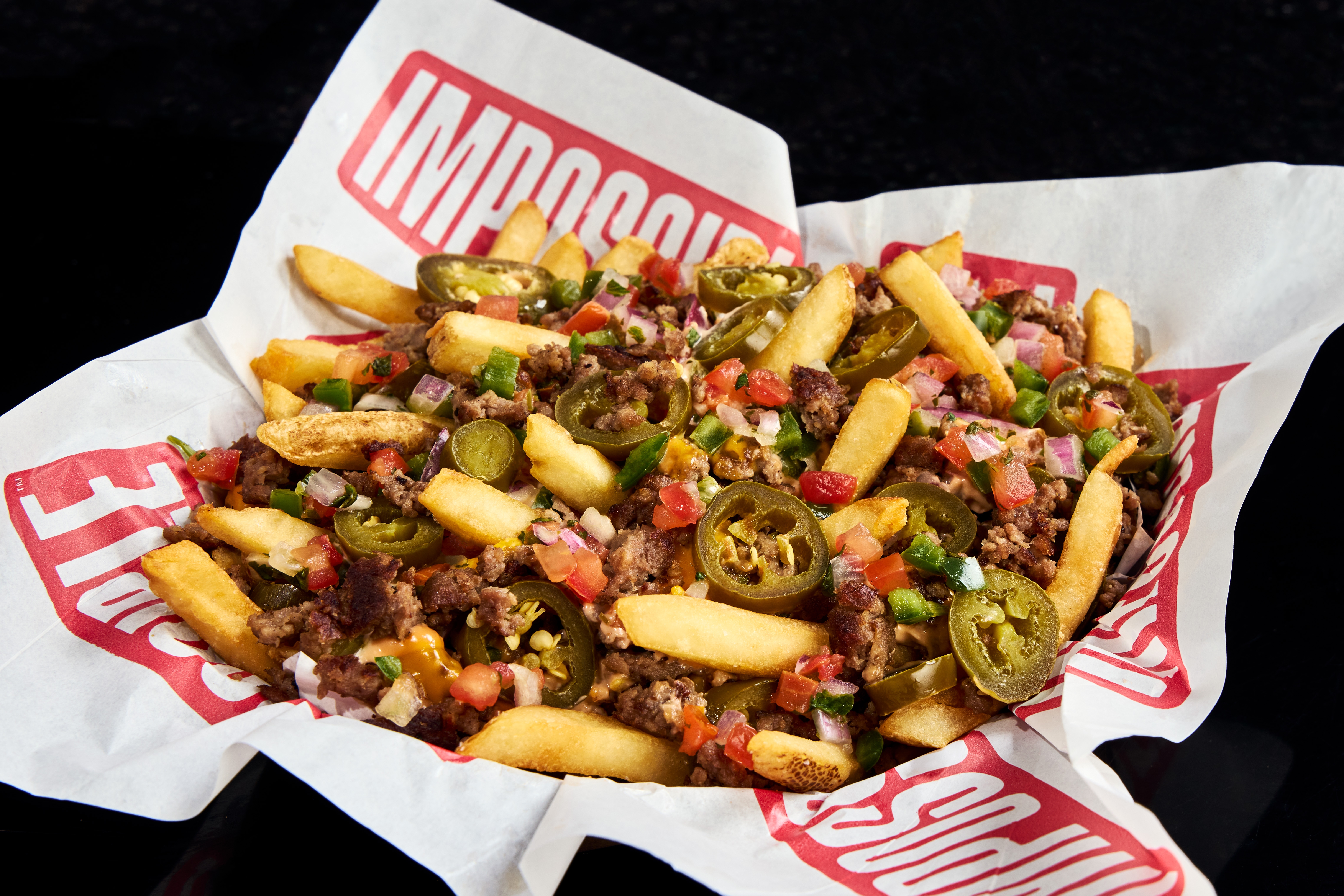 This goes out to all the vegetarians and vegans out there who have had to survive on arena popcorn. I'm Claudia, an NYC-based editor on the Tasty team covering all things food, whether it's a viral recipe, the latest food drama, or politicians awkwardly standing in a Steak 'N Shake. These whimsically large bags haunt my nightmares. A tried-and-true classic that has never let this pescatarian down. This smashburger is loaded up with two quarter-pound Impossible patties, lettuce, tomato, pickles, Rafters Sauce, and your choice of plant-based American or cheddar cheese. Everything is sandwiched between not two, but three sesame seed buns. Told ya it's not a soggy portobello burger. Sad venue glizzy? We don't know her. This Impossible® Beef Hot Dog takes things up a notch with all the bahn mi fixin's, including plant-based dijonnaise, pickled daikon, carrot, jalapeño, Persian cucumber, cilantro, Thai basil, and toasted sesame seeds. Chili orange-glazed Impossible Chicken and mixed vegetables are piled atop a bed of jasmine rice to recreate this comfort classic. Definitely an elevated option if you've had enough burgers and dogs. Now that I think about it, I've never seen quesadillas offered as a venue food option, and I'm beginning to question why. This one's got Impossible® Steak Bites, peppers, onions, plant-based mozzarella, pico de gallo, and chipotle mayo in a flour tortilla, served with plant-based sour cream. Sorry, pizza, there's a new triangular hand-held food in town. The number of times I've had to call venue fries with ketchup my dinner is criminal. Well, not anymore, because these loaded chopped cheese fries truly are a whole meal. Topped with seasoned Impossible® Beef, onions, plant-based cheddar cheese, pico de gallo, pickled jalapeños, and Rafters Sauce, your meat-eater friends might even get a little jealous.
