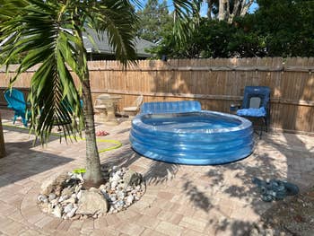 We hope you love our recommendations! While every product is independently chosen by our editors, BuzzFeed and our publishing partners may collect a share of sales or other compensation from the links on this page. You can read more about how our affiliate partnerships work in our Editorial Standards & Ethics Guide. Sorry in advance to the group chat trying to make plans, but chilling on your avocado pool floaty is very important business to attend to. It doesn't require a pump either — all you have to do is whisk it through the air to blow it up. It's suggested that you close the sleeve opening before ending each movement and keep the mouth closed until you begin the next one. Once there's enough air inside, you'll be good to go! Promising review: "I'm in love with this product! I’ve been using it everyday to chill outside and it’s great! It's easy to set up, set down, and it's super comfy." —Alexus Get it from Amazon for $41.98+ (available in 21 styles). One 5.6-pound bag provides about 615 sq. ft. of new lawn coverage, or up to 1,845 sq. ft. if you're overseeding. Promising reviews: "Before and after [above] of using the Rapid Grass + extra fertilizer for lawn bald spots from Sunday. This before and after is only 10 days of growth. I also applied a thin layer of top soil to let the grass root more." —Chandler Varonfakis "Have a dog who destroys the spot she likes to go. We rotate and use this and the grass comes back great and full." —Lindsey Get a 5.6-pound bag from Amazon for $23.98 (available in two other sizes). Promising review: "It is early July, and I could not be more pleased with this seed mixture. Almost every day since April, I have had new surprises in my garden. I have enjoyed alyssum, Chinese forget-me-not, zinnias, cosmos, and marigolds. I am beginning to see more forget-me-nots, poppies, pineapple sage, and Armeria. I am a beekeeper and, hence, was trying to plant some flowers the bees would like. I have an unbelievable number of pollinators busy among the flowers all day long. Today, I saw a hummingbird!! I am hoping to have these flowers self-seed and to have even more lovelies next year!" —Bio Teacher Get it from Amazon for $19.99 (available in 13 packs). FYI, if you're making s'mores, don't throw these on until *after* you're done cooking with the fire. To get the show started, just add 1–3 of these packets to your fire, and you'll get up to a full hour of colorful flames before the vibrancy fades. You can add additional packets as needed! Promising review: "These fire color-changing packets are the backyard secret weapon you never knew you needed! These super colorful wonders turn an ordinary fire into a mesmerizing spectacle that lasts about 45 minutes. Throw in two or three at a time, and you've got a backyard rave that even Mother Nature would RSVP to. A simple yet enchanting way to add a pop of color to your outdoor gatherings!" —Matt Peterson Get a 25-pack from Amazon for $20.99 (available in other packs). You could even color-coordinate the flowers you put inside 🌈. Do note the size before purchasing, as the smaller size (pictured above) is just under 4 inches tall and 4 inches wide. They come in a larger size now, about 6 inches tall and wide! Promising review: "Lovely colorful flower pots. Perfect size to hold a single flower, and they add such a nice pop of color to my yard. Very easy to hang up, no hardware required! I’m getting a lot of compliments on them. I bought several sets and planted bright flowers in them. I have them lining the inside of my yard and on the front of the house. They add a lot of cheer and homeyness for a simple and cheap project." —Maegan Get a set of 10 from Amazon for $18.99 (also available in all-black and all-white sets and a larger size). Promising review: "I purchased these to cover the side of my house. Installation was easy and I left them outside for two days to charge. The light coverage was about what I expected from them and do the job well. The motion sensitivity covers all the side and lights turn on. It has rained about three times and still work great and hoping they last for a long time." —J. Argueta Get a set of four from Amazon for $26.54. Promising review: "These are incredible!! I like using the color feature in winter when it's drab outside, but once my gardens bloom, I stick to white. I have purchased these five times, and it's going to be six. I bought the first set two years ago and just purchased my newest set. I put the old ones right next to the sets I just purchased and had never changed the batteries on the original ones...they were still bright so I never needed to. They are beautiful!!" —mosey Get an eight-pack from Amazon for $35.99 (also available in two smaller packs). It also has built-in benches and cup holders so you can lounge comfortably with your favorite drink close by! Promising review: "This pool has been a great summertime addition to beat the Texas heat! My daughter, husband, and I are enjoying it so much! It’s a pretty good size, easy to set up, and, so far, is holding up pretty well! I did purchase a couple of additional items to keep the water/ pool clean and covered. I was quite skeptical at first, as we had already purchased another pool this summer that didn’t last, but this pool was it! If you’re looking for something to relax in and cool off, go for it!" —Pineapple_Beauty94 Promising review: "My 2-year-old and 10-year-old kids and 32-year-old husband love it. Super easy to put together. Great for an easy cool-down in the back for those without a pool. Florida living here, so water is a must in summer. Has held up very well in terms of durability. Left it out for a few days, and it still worked great." —Deja T. Get it from Amazon for $28.95+ (available in four designs). You can use this fast-drying paint on almost any surface, including wood, metal, plastic, and masonry. Promising review: "I recently tried this spray paint, and I must say,