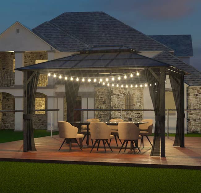 We hope you love our recommendations! While every product is independently chosen by our editors, BuzzFeed and our publishing partners may collect a share of sales or other compensation from the links on this page. You can read more about how our affiliate partnerships work in our Editorial Standards & Ethics Guide. Turn your backyard into BBQ party central. ☀️😎 Get it from Joybird for $1,467 (originaly $2,445). Promising review: "Smart table, suits its purpose nicely. We have it on our deck. Brunches and dinners became more fun with this table, whether it is a small party of 3–4 or a bigger crowd up to eight! Easy to extend and put back." —Phillip Promising review: "I love my new rug so far. Very much worth the investment. The unique pattern ties the whole backyard together. I sit outside and admire it any chance I get. Easy setup, very glad it's washable. Love, love, love!" —Darcy Get it from Ruggable for $169+ (available in seven sizes). Promising review: "The table top cornhole game was even BETTER than expected. Dinner was left cold on the table, the ice melted in our drinks, and the dog whined to be fed as we hooted our way to victory... Well, Grandma did, anyway, making a hole in one on her very first try! That motivated the grandkids to try harder, only to be beaten by their Dad. Buy it and try it." —Organizer of family fun Get it from Uncommon Goods for $54 (replacement bean bags are available for $8) Promising review: "I purchased two sets of these lights for an outdoor project. They have a great shine without being too bright." —Allison93 Promising review: "The dragonfly light string adds a subtle and relaxing glow in our hot tub enclosure, enhancing the mood and the experience." —Karen Promising review: "I bought this grill as a Father’s Day gift for my husband, and he absolutely loves it. He’s been wanting a good grill for a while, and this one has been perfect for us. It has four burners, a side burner (he uses it for beans or warming sauces), and a lot of space to cook. He’s already grilled burgers, steaks, and even veggies all at once with no problem. It heats up fast and cooks evenly. The grates are easy to clean, and food doesn’t stick. The side burner is super convenient. It looks really nice and modern in black and silver. It starts right up with the push of a button. Overall, I’m really happy with this purchase and even happier that my husband is enjoying it so much. It’s been great for family cookouts and weekend BBQs." —Dama Get it from Lowe's for $249+ (available in two sizes and two colors). Promising review: "Absolutely love this rug. The colors in it are subtle and beautiful, and it's soft. Couldn't love it more." —Laura M. Get it from Quince for $99.90+ (available in five sizes and two colors). Promising review: "Oddly soft for what is supposed to be an indoor outdoor rug. Looks great, and has stood up well so far in a high-traffic area." —Beth Get it from Quince for $79.90+ (available in four sizes and three colors). Get it from Anthropologie for $598 (available in two colors). Promising review: "This is such a nice idea for the backyard. It was super easy to put up and held very well. The movie image was very clear, and the screen size was perfect for the family. We put this in our camping bin and will continue using it when we go camping this summer. This would make a great gift for anyone!" —Findinglavendar Promising review: "Used to cover back patio. Was easy to work with and looks great. Haven’t been installed very long, but seems put together well and should last for a long time." —Shelley Get them from Ikea for $29.99+ (available in five versions; comes in packs of nine to cover nine square feet). Promising review: "I was originally just looking for a small gazebo to enjoy the summer, but my wife happened to stumble upon this 12x20 monster. The price was right, so I figured, why not go big? It arrived on a truck, perfectly packed without a scratch. Three of us started the assembly right after brunch and worked straight through the evening. We were finally able to sit back and relax. The polycarbonate panels feel solid, and they actually keep it pretty warm in this weather. It was a long day, but totally worth it. Now I’m just waiting for the summer heat so I can grab a lounge chair, slice up some watermelon, and chill." —anonymous Get it from Lowe's for $699.99+ (originally $970+; available in two sizes). Promising review: "Absolutely love this outdoor sofa! The design elevates my outdoor space and has so much room. I love how easily the cushion covers can be cleaned, and they seem very durable. Very easy and simple to put the furniture together. I’m not sure how the wood will hold up over the long term, but it held up great after one full season. I did purchase Article’s furniture covers — very happy I did this." —Heather D Get it from Article for $1,689+ (available in three configurations and four colors; also available in a set with a coffee table). Promising review: "I absolutely love this firepit and give it five stars! It’s not only functional, but also looks stunning and adds a fancy touch to my backyard. The large size allows you to load plenty of wood, making it perfect for long gatherings. It provides exceptional warmth and easily heats up the entire backyard. We tested it in late November during the chilly Michigan weather, and it didn’t disappoint. With around 10 people gathered around, we stayed outside for about four hours without feeling the cold at all. I highly recommend this firepit to anyone looking for both style and performance!" —Aida Promising review: "Very pleased with this firepit so far. Love the look of it. It came with a cover, lid, poker, and, not to mention, the grill top grid. Can’t wait to use this! So far so good." —Kimberly Get it from Wayfair for $129.99+ (originally $139.99+; available in three sizes and two colors). Promising review: "I've been waiting
