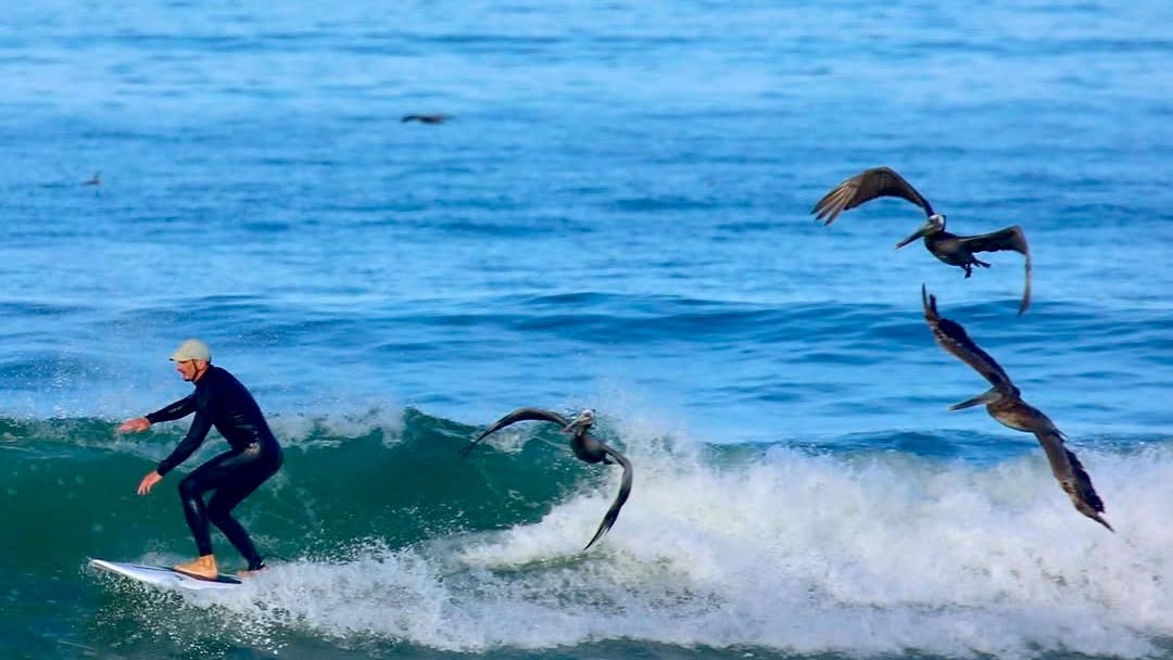 Editor’s note: The following article is, in fact, an April Fool’s Day prank. They fooled us! But there is some truth to it. As the photographer, Dave Gibbs, noted: “Pelicans are one of my favorite birds but I did learn that one surfer had been actually injured by a pelican in HB before.” Read on with that caveat. When it comes to surfers, and encounters with marine wildlife, the mind wanders to the usual suspects – sharks, dolphins, seals, maybe even whales. But a rare encounter happened recently in Huntington Beach, CA. A surfer was attacked by a group of pelicans while in the water at Bolsa Chica State Beach. Luckily, he lived to tell the tale. Dave Gibbs Dave Gibbs (aka @bolsadave), a surf photographer, posted images from the incident. They show the surfer – who only goes by the name Justin – being attended to by lifeguards. He has an icepack on his forehead, presumably where the bird made its strike. From the looks of it, and the surfer's smiling face, the injuries appeared to be fairly minor. Gibbs also shows other scenes from that day, with the large birds flocking around the lineup, even getting in the way of fellow surfer while riding a wave. Captioning the images, Gibbs wrote: “Marauding pelicans attack surfer at Bolsa Chica! ‘They were all over me like I was a big fish.’ Justin was lucky to survive...” Related: Shocking New Footage Shows Brazilian Surfer Attacked by Shark (Video) As mentioned before, although pelicans are seen quite often amongst the lineup, occasionally soaring above the waves as if they’re riding them, attacks on humans are extremely rare. In fact, this may just be the first of such encounters we’ve heard of. But certainly it must’ve happened before, right? Indeed. See below. There does appear to be accounts of pelicans acting aggressively, but mainly it’s a result of hunger or perceived danger. Perhaps this surfer was in the wrong place at the wrong time. A defensive pelican, fighting for fish, and feeling threatened. For more on typical pelican hunting behavior, here’s the National Audubon Society: “Brown Pelicans forage by diving from the air, from as high as 60 ft above water, plunging into water headfirst and coming to surface with fish in bill. Tilts bill down to drain water out of pouch, then tosses head back to swallow. Occasionally, it will scavenge and can become tame, even approaching fishermen for handouts.” Related: 10ft Crocodile Captured in Crazy Footage at Infamous Mexico Surf Spot (Video) This story was originally published by Surfer on Apr 10, 2026, where it first appeared in the News section. Add Surfer as a Preferred Source by clicking here.