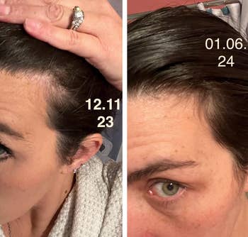 "I hardly write reviews...but this one deserves to be written about!! My hair was falling out a LOT, and somehow just with the FIRST application onwards, I started seeing less fall. And now, after four months, I can see hair growth as well, and my hair is already looking thicker!! And I’ve been using it only once a week...just a few drops and massaging in. Omg, how can anything be so simple and yet so effective!!! Amazing! Amazing!!! Whoever invented this...hats off!!" —Dee