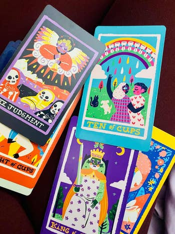 Promising review: "So cute, I love the art style and the interpretation book. I also liked that the book has spread ideas to try. The art has me ogling every time I come across a card I haven’t seen before. The box is great quality and helps keep the cards safe, along with being adorable." —Riley